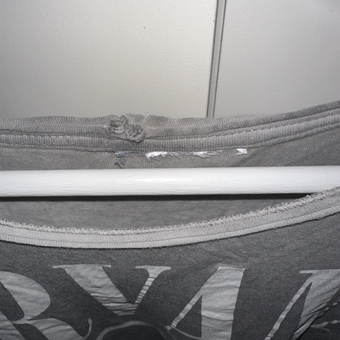 Grå lite oversize nirvana tisha! Osäker på storlek och var den är köpt; men gissar på M/L & HM.