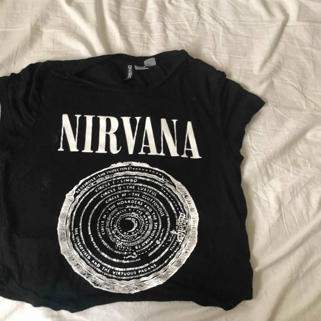 Snygg och bekväm croppad T-shirt med nirvana tryck, köpte den i Norge för ett år sedan ca men använder inte längre! Frakten är inkluderad i priset :)