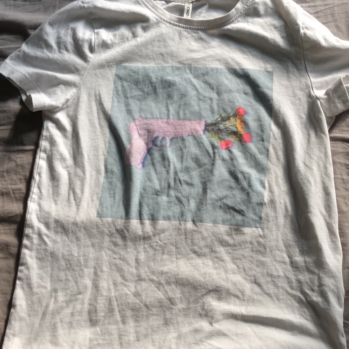 En vit t-shirt med tryck från only andvänd 1 gång säljer för att jag inte andvänder den