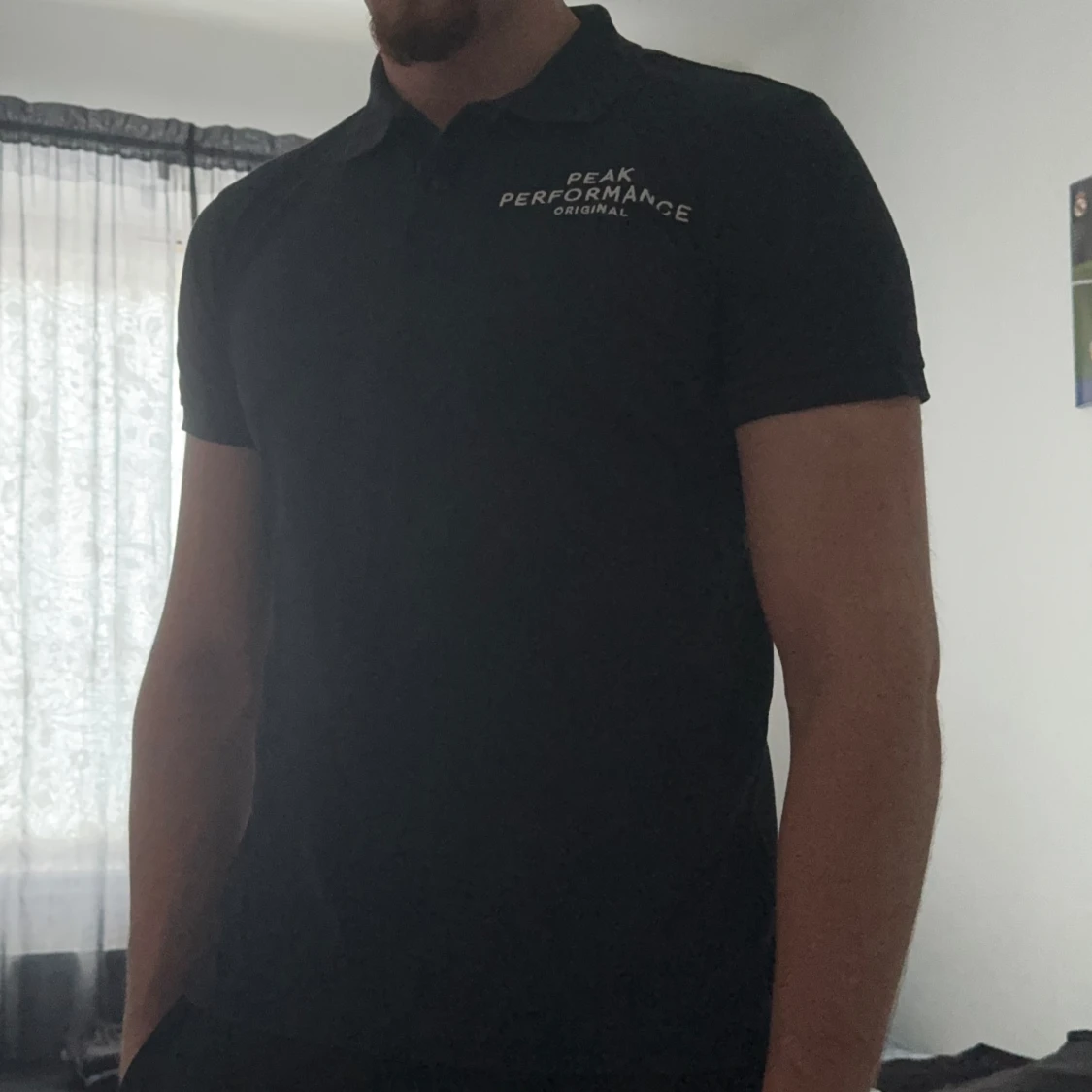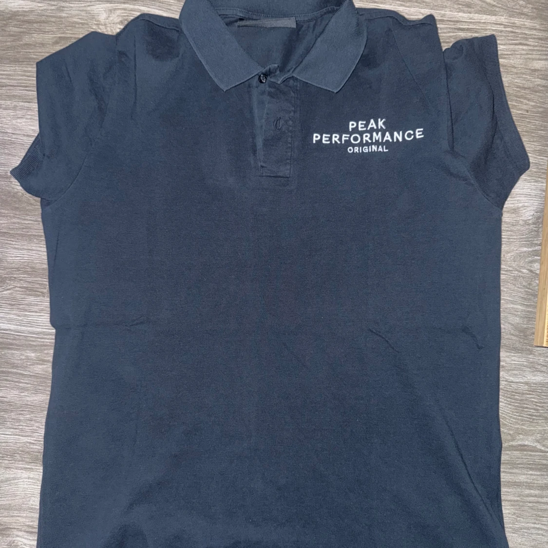 Säljer en marinblå pikétröja från Peak Performance i storlek M. Tröjan är i mycket bra skick och har en klassisk design med märkeslogo på bröstet. Materialet är mjukt och bekvämt.