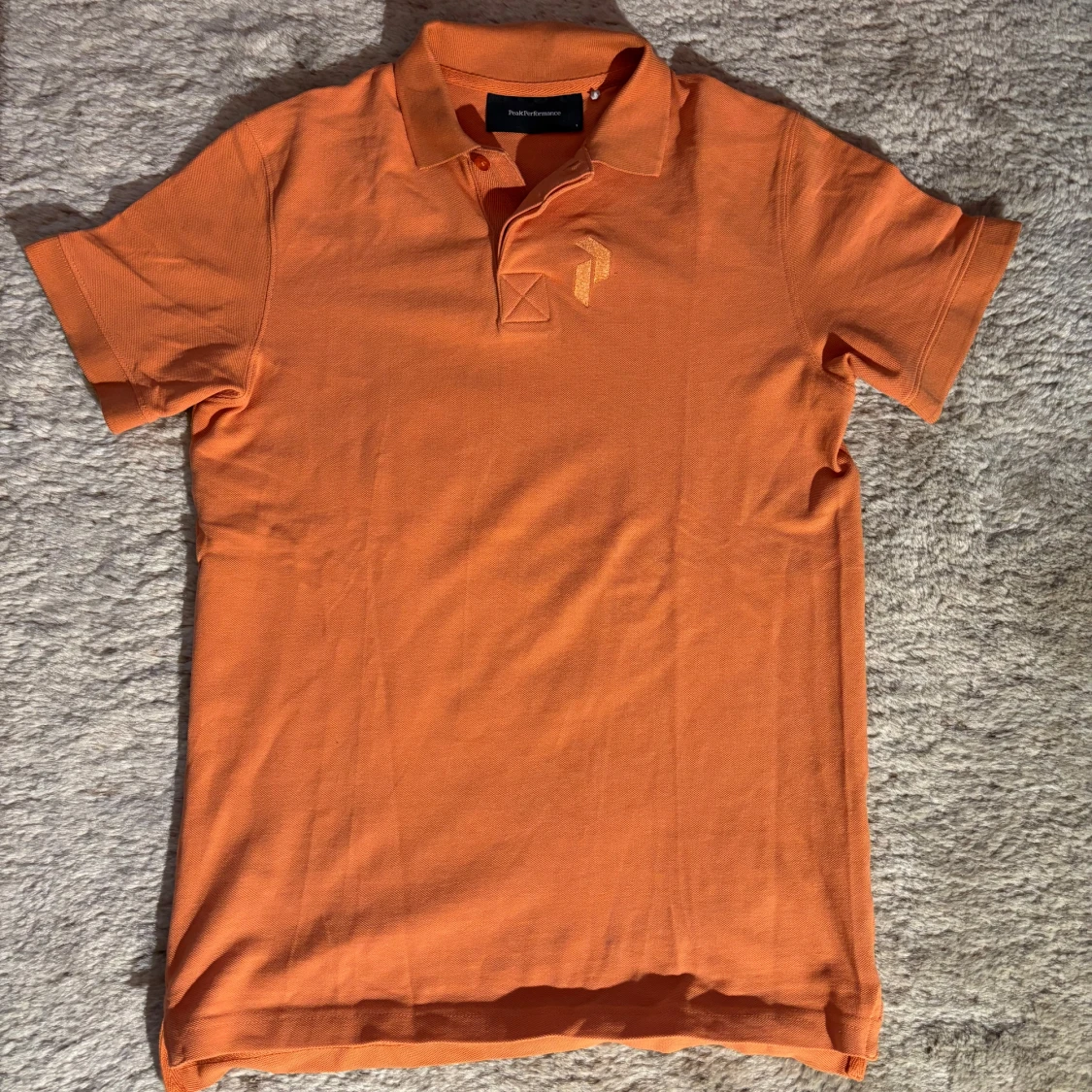 Snygg orange pikétröja från Peak Performance i klassisk modell med krage och korta ärmar. Tröjan är i bomull och har en broderad logga på bröstet. Perfekt för dig som vill ha en fräsch och sportig look.