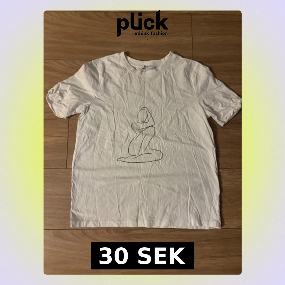 Vit t-shirt från Pieces med ett tryck i svart på framsidan. Klassisk rund hals och korta ärmar. Annvät Max 2 gånger