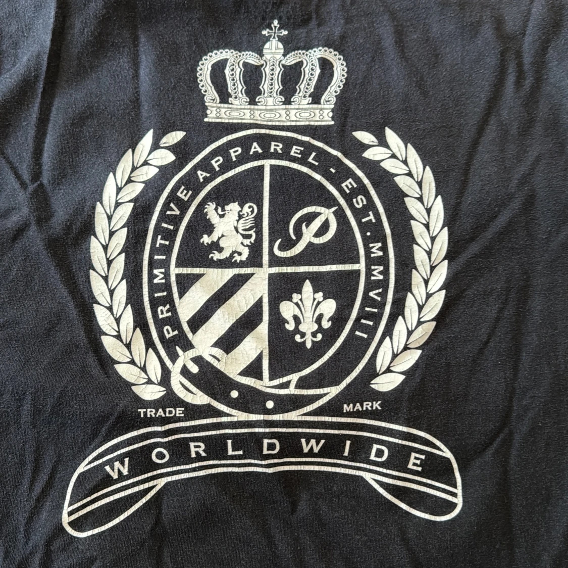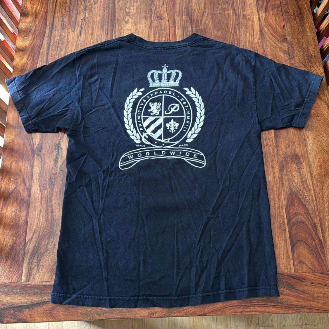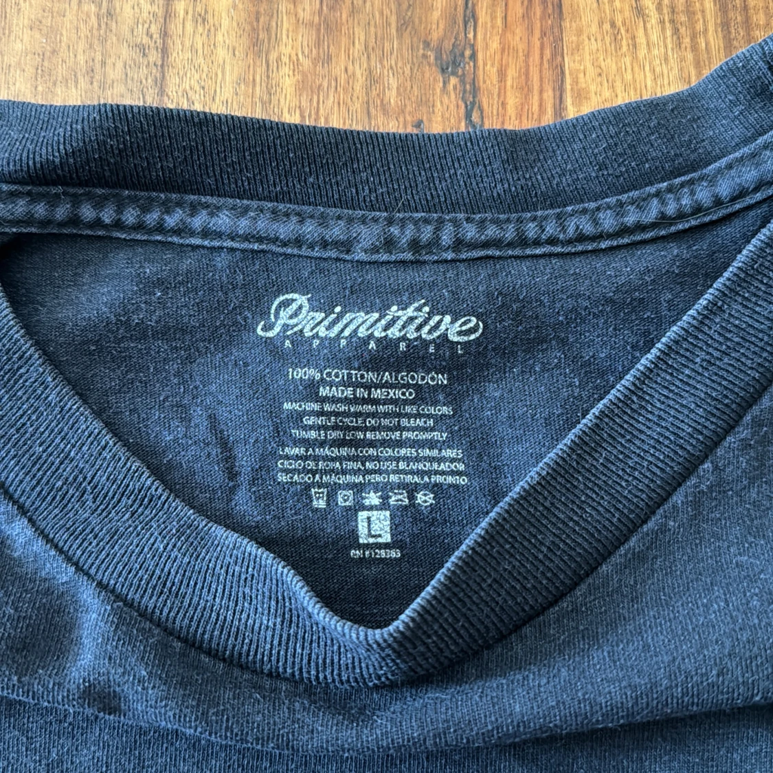 En svart primitive T-shirt med tryck på framsidan och baksidan. En hyfsat använd tröja med mycket kvar att ge. Condition: 6/10