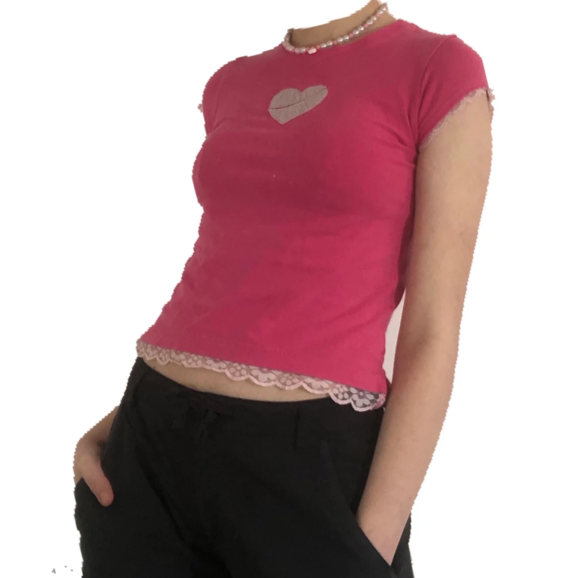 så söt rosa babytee med spetsdetaljer<3 frakt tillkommer på 30 kr, dma vid frågor!💗