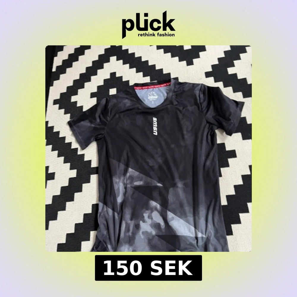 Säljer en svart t-shirt från USWE i storlek S. T-shirten har ett diskret camouflagemönster i olika grå toner och är tillverkad i ett lätt och snabbtorkande syntetmaterial. Perfekt för träning eller aktiva dagar. Klassisk passform med korta ärmar och rund hals.