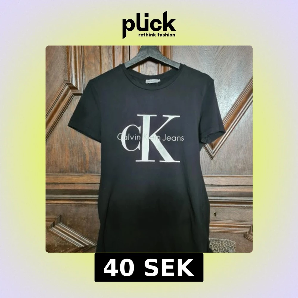 Svart t-shirt från Calvin Klein med stor vit CK-logga, tyvärr lite sprickor I trycket. Se bild.