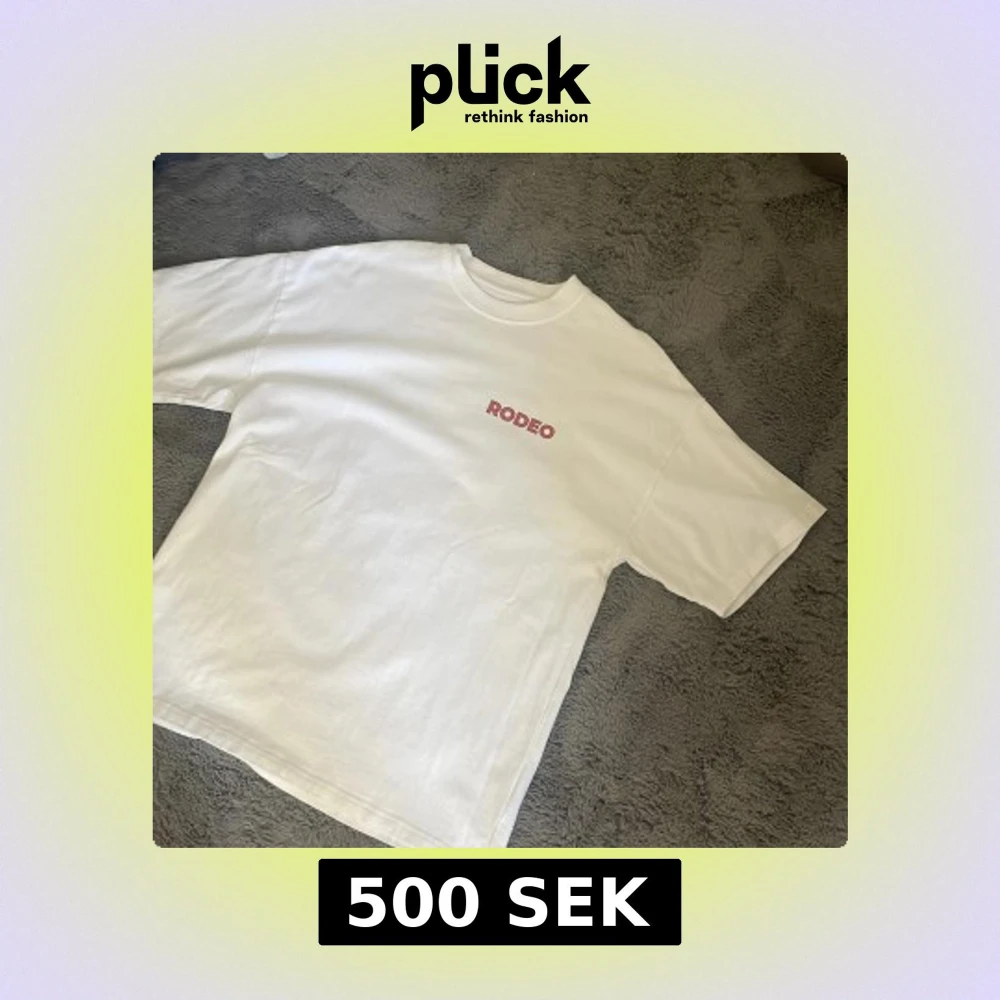 Vit t-shirt från Bolaget med röd RODEO-text på bröstet och stor Vegas-inspirerad print på ryggen. Klassisk passform, rund hals och korta ärmar. Perfekt statement-plagg för dig som gillar unika tryck och streetstyle. Denna säljs endast på konserter.