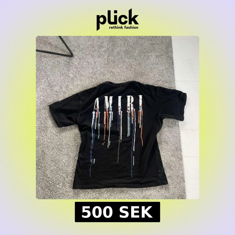 Svart t-shirt från Amiri med stort tryck på ryggen och mindre tryck på bröstet. Trycket består av vita bokstäver och färgstänk i blått, orange och vitt som rinner ner. Klassisk passform och korta ärmar, tillverkad i mjuk bomull.