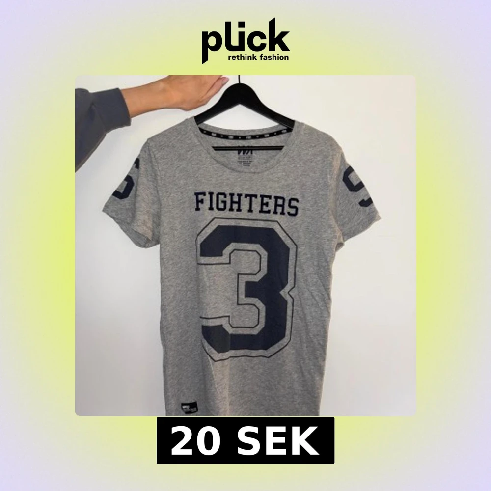 Grå t-shirt från WA Action Sports med tryck 'FIGHTERS' och stor siffra 3 i mörkblått på framsidan. Siffran 9 på båda ärmarna ger en sportig vibe. Rund hals och korta ärmar, perfekt för en chill och aktiv stil.