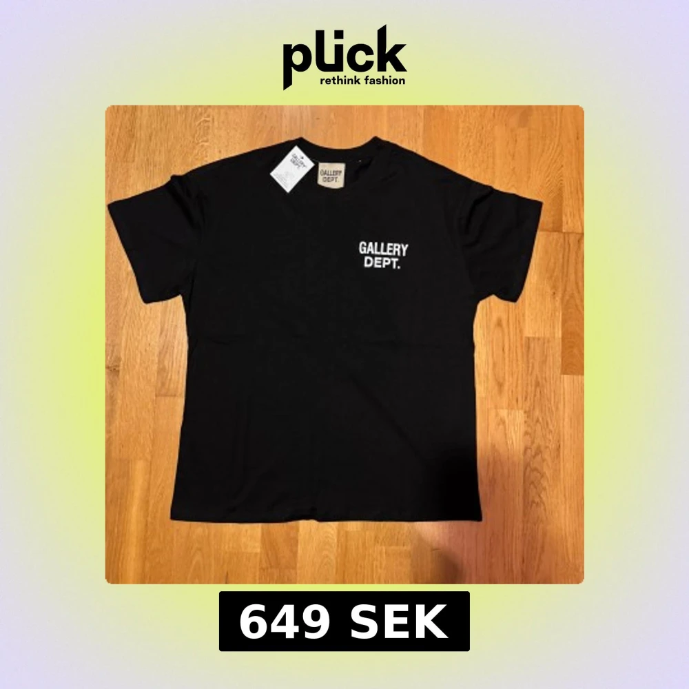 Svart t-shirt från Gallery Dept. med vit logga tryckt på bröstet och stor text på ryggen. Klassisk rund hals och korta ärmar. Tillverkad i mjuk bomull som känns skön mot huden. Perfekt för dig som gillar streetwear och enkel stil.
