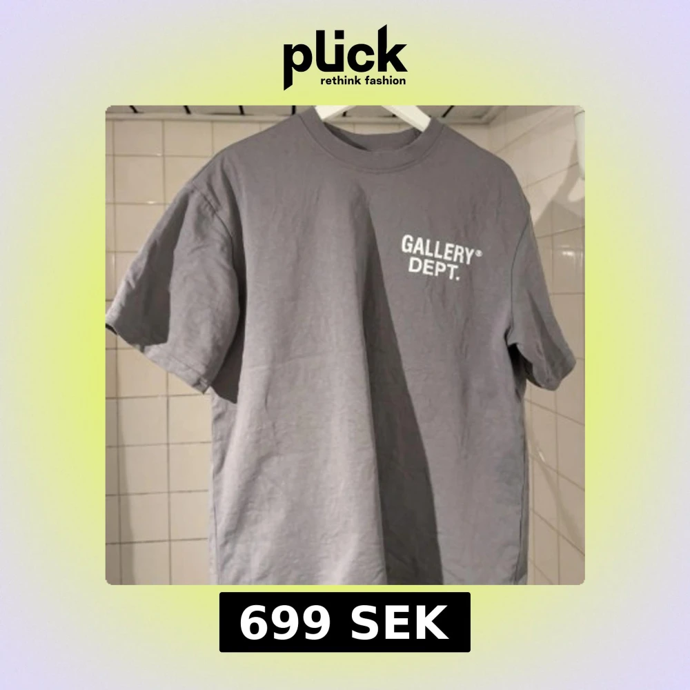 Tjaa! Säljer min gråa Gallery Dept t-shirt i storlek S. Är i nytt skick. Mjuk och skön passform, sitter riktigt bra och går att matcha till det mesta. perfekt för dig som gillar streetwear och vill ha något unikt.