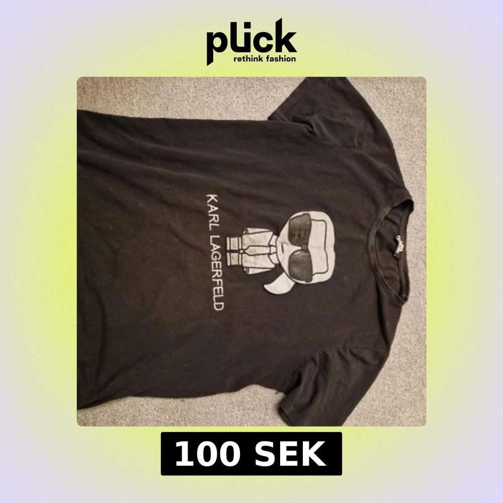 Snygg svart t-shirt med ett coolt tryck av Karl Lagerfeld i grått och vitt. Perfekt för dig som gillar mode och vill ha en stilren look. T-shirten har korta ärmar och en klassisk passform.