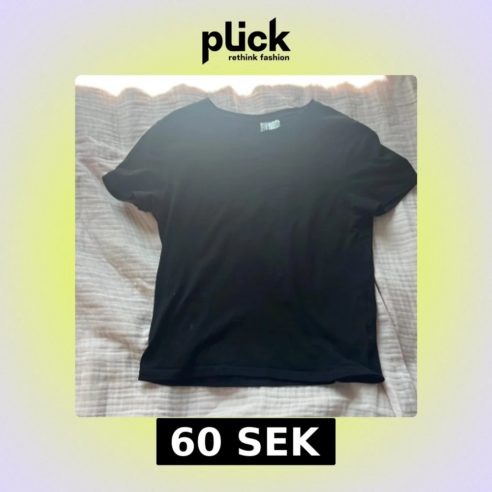 En svart basic t-shirt från H&M Divided i storlek S. Klassisk rund halsringning och korta ärmar. T-shirten är i mjuk bomull och har en enkel, clean look som funkar till allt. Perfekt för dig som gillar minimalistisk stil.