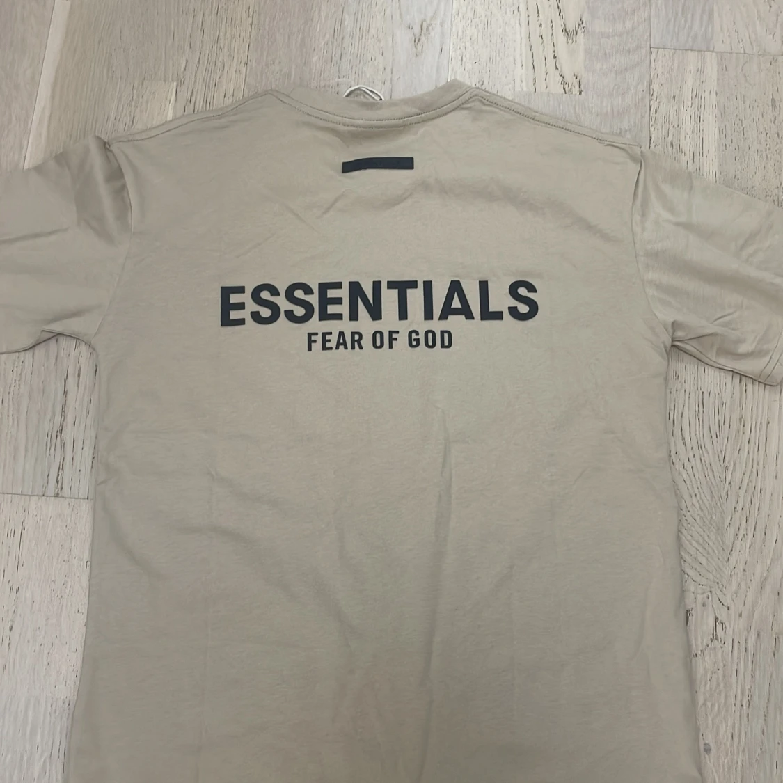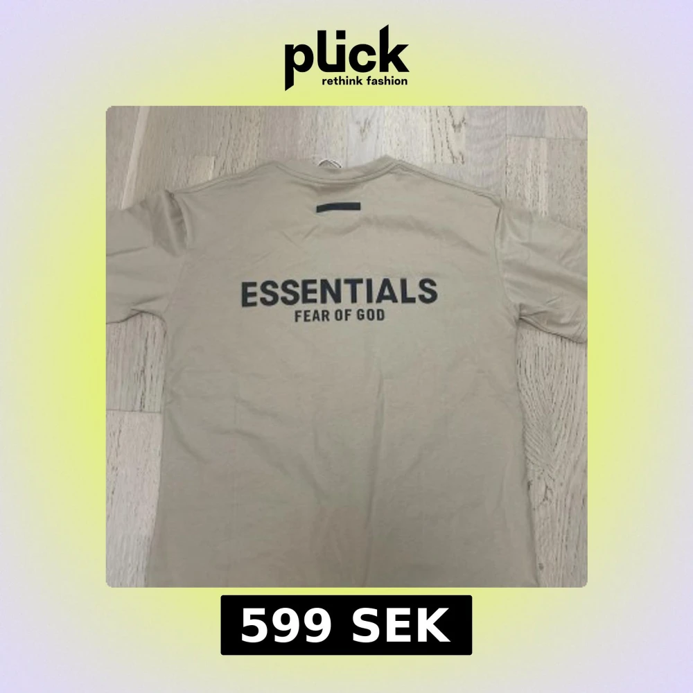 Snygg beige t-shirt från Essentials Fear of God med svart logga tryckt på ryggen. Klassisk rund halsringning och korta ärmar. Tillverkad i mjuk bomull för en skön och avslappnad vibe. Perfekt för dig som gillar streetwear och minimalistisk stil. Produkten har aldrig använts och är helt nytt. Pris kan diskuteras.