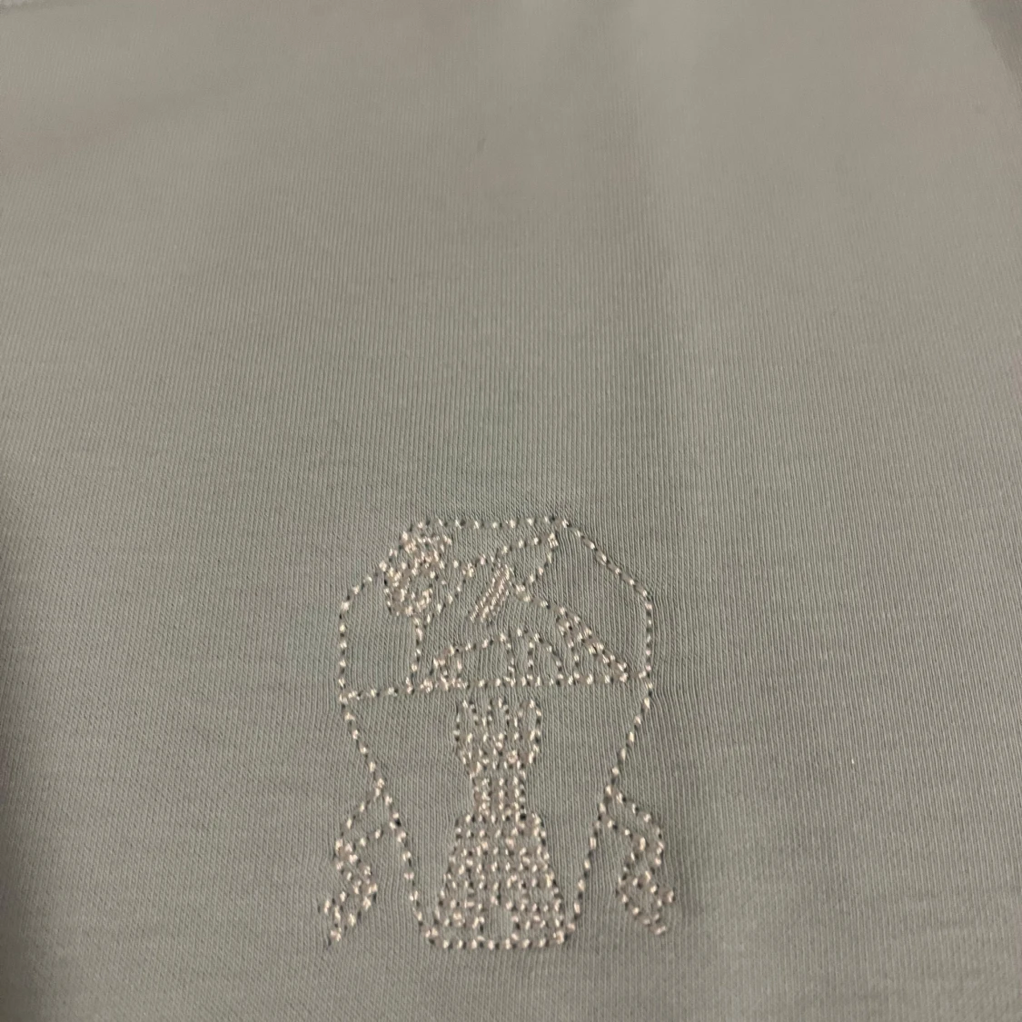 Supersnygg ljusblå t-shirt från Brunello Cucinelli med diskret logga i små pärlor på bröstet. Klassisk rund halsringning och mjukt bomullsmaterial som känns lyxigt mot huden. Perfekt för dig som gillar stilrena och exklusiva plagg.