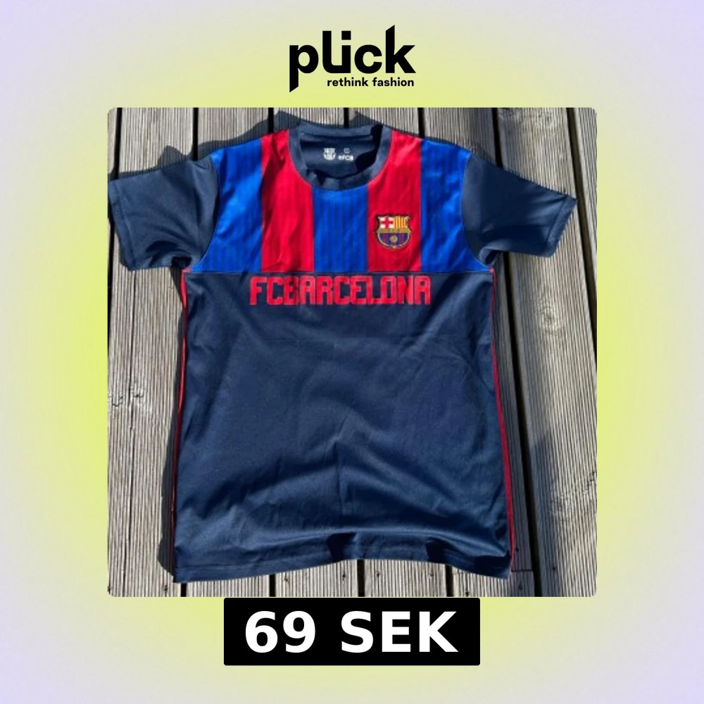 Snygg FC Barcelona fotbollströja med Messi och nummer 10 på ryggen. Tröjan har klassiska blå och röda vertikala ränder upptill, gul text och emblem. Materialet är lätt och andas. Säljes då den är alldeles för liten för mig. Är storlek S men är S/M