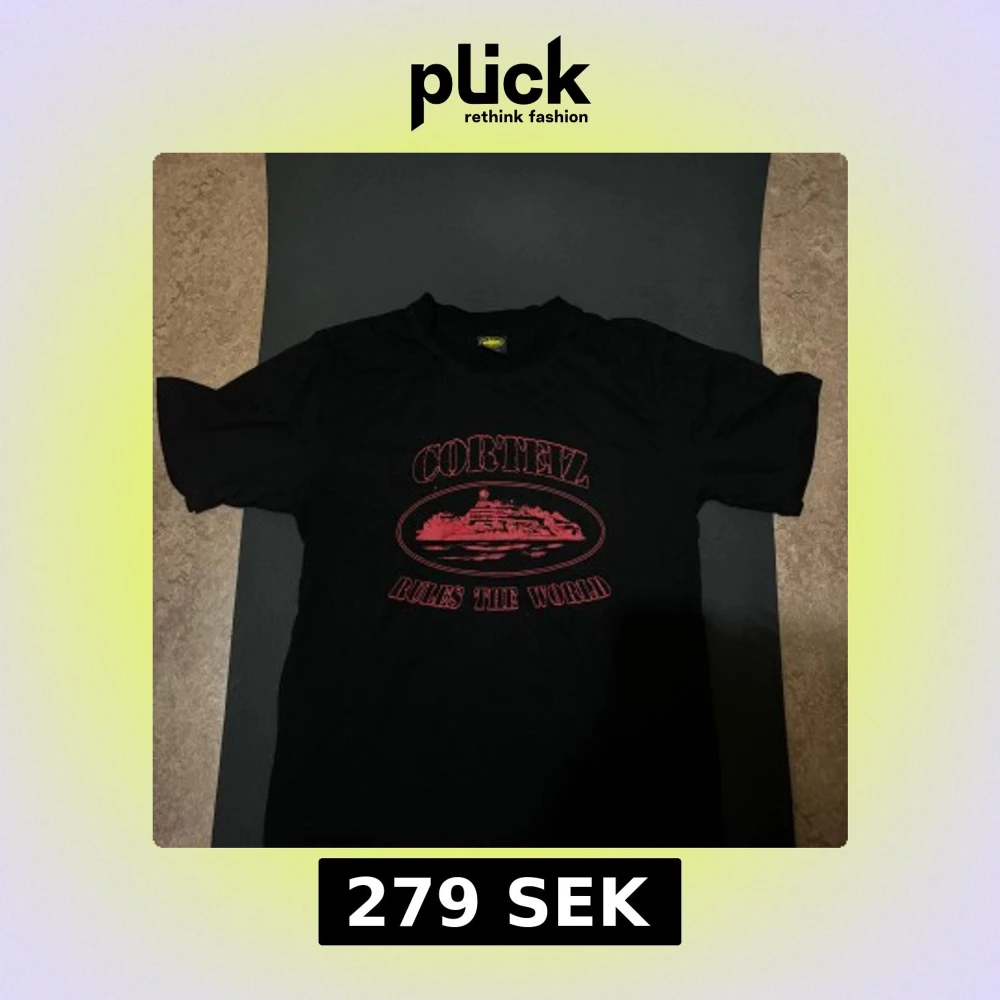Svart t-shirt från Cortez i storlek small med röd tryckt grafik och texten 'Cortez Rules The World' på bröstet. Klassisk passform och rund hals. Tillverkad i mjuk bomull, perfekt för en avslappnad streetstyle.
