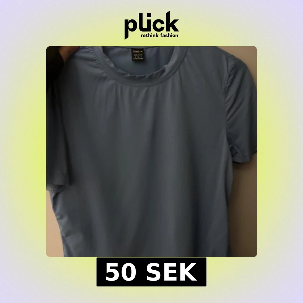 Enkel blå t-shirt från SHEIN med rund halsringning och korta ärmar. T-shirten har en clean look utan mönster eller tryck och är tillverkad i ett mjukt, lätt material som känns skönt mot huden.
