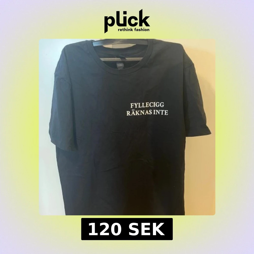 Svart T-shirt med citatet ”fyllecigg räknas inte” perfekt för fest eller annat liknade köpt för 285 säljes för 120kr snabb affär, använd en gång!