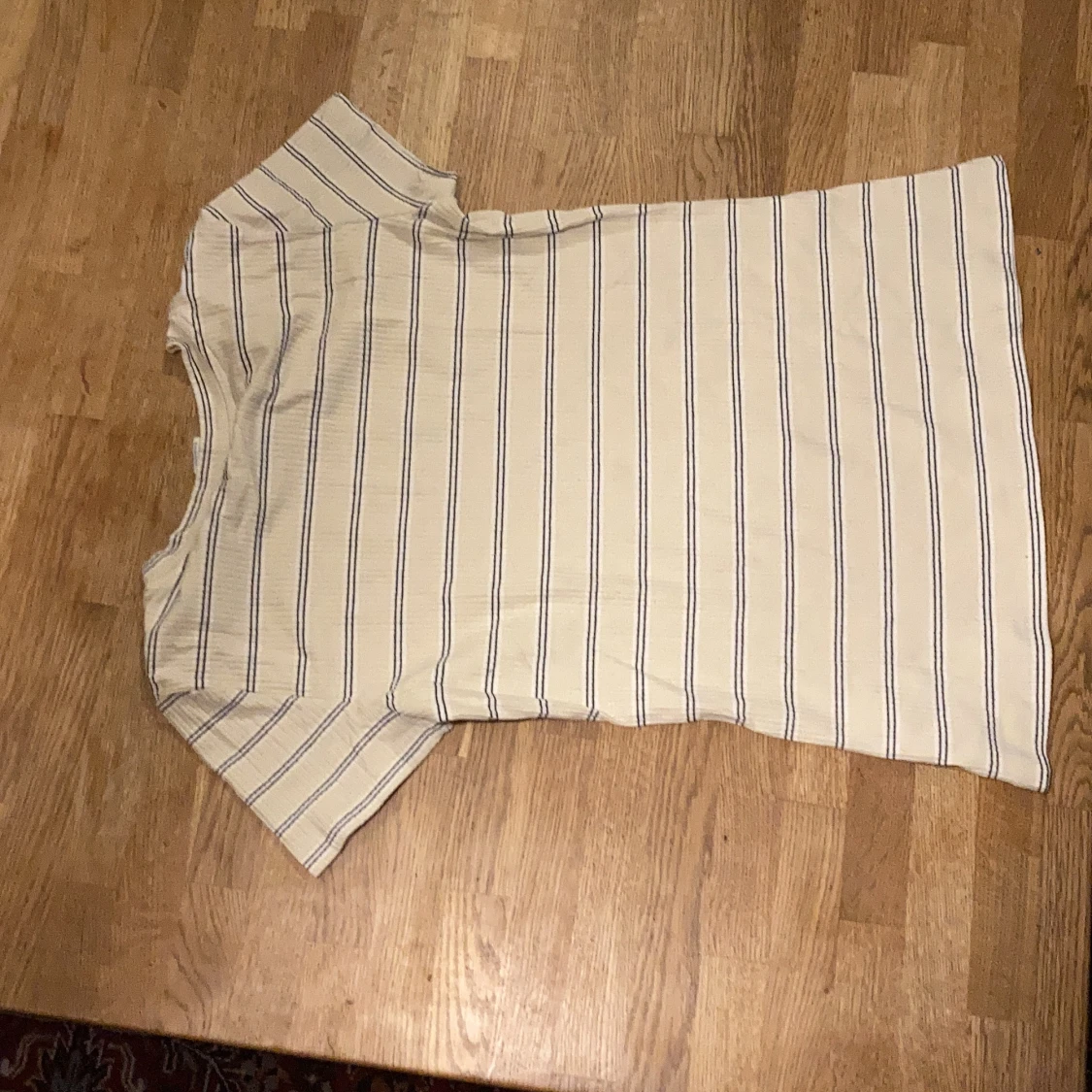 En beige, svart och vit T-shirt. Jag säljer för att den är lite för lång för mig.