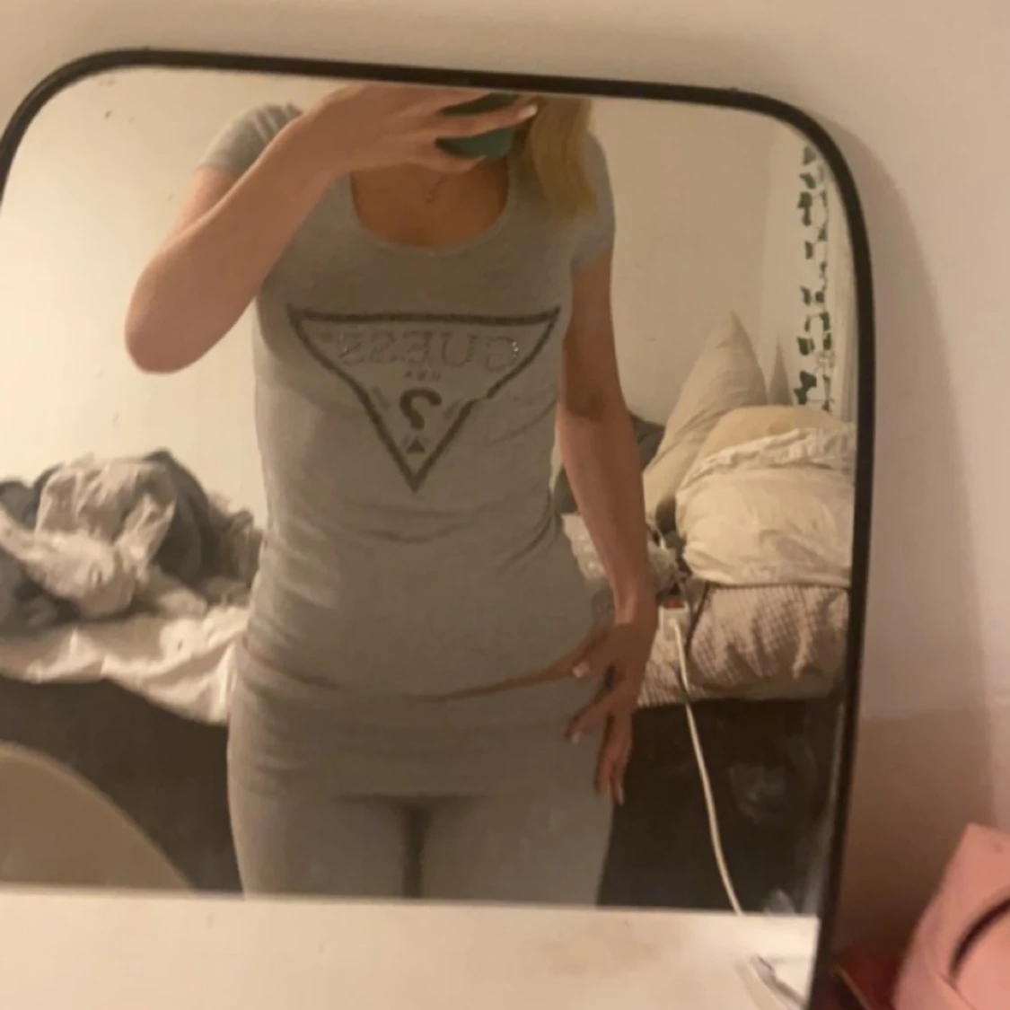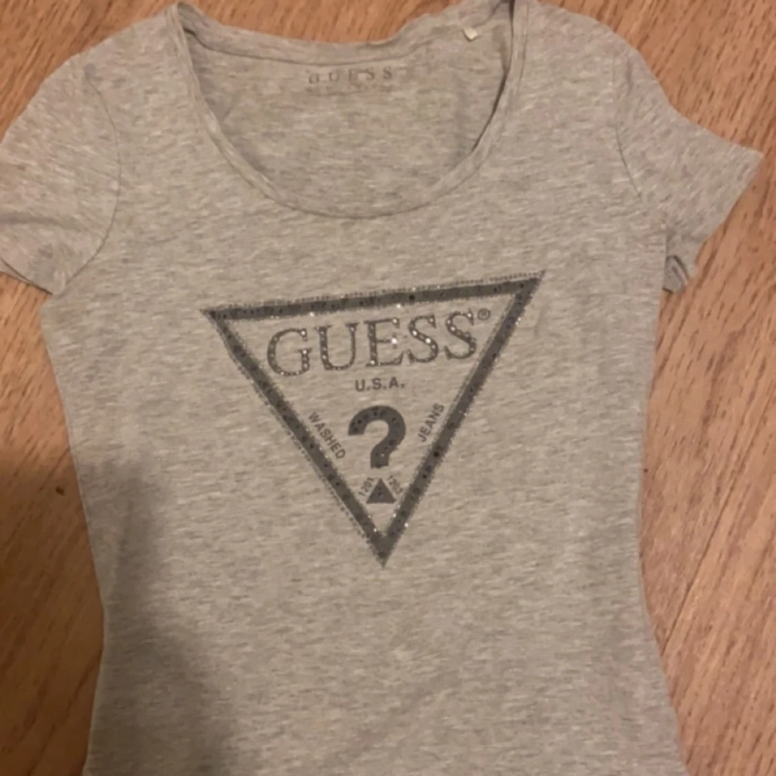 Skit snygg guess tröja som sällan andvänts, väldigt stretchiga material så passar xs-m men är själv mellan s och m. Pris kan diskuteras