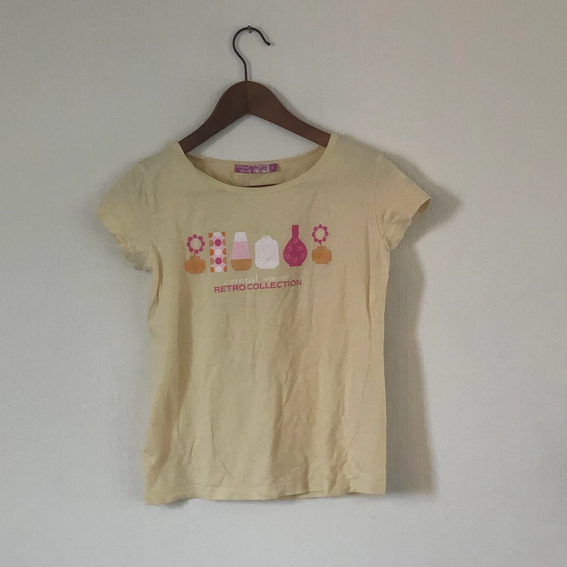 Jättesöt gul t-shirt med tryck. Storlek XL men passar mer som en M/L. Skicka gärna ett meddelande vid frågor!