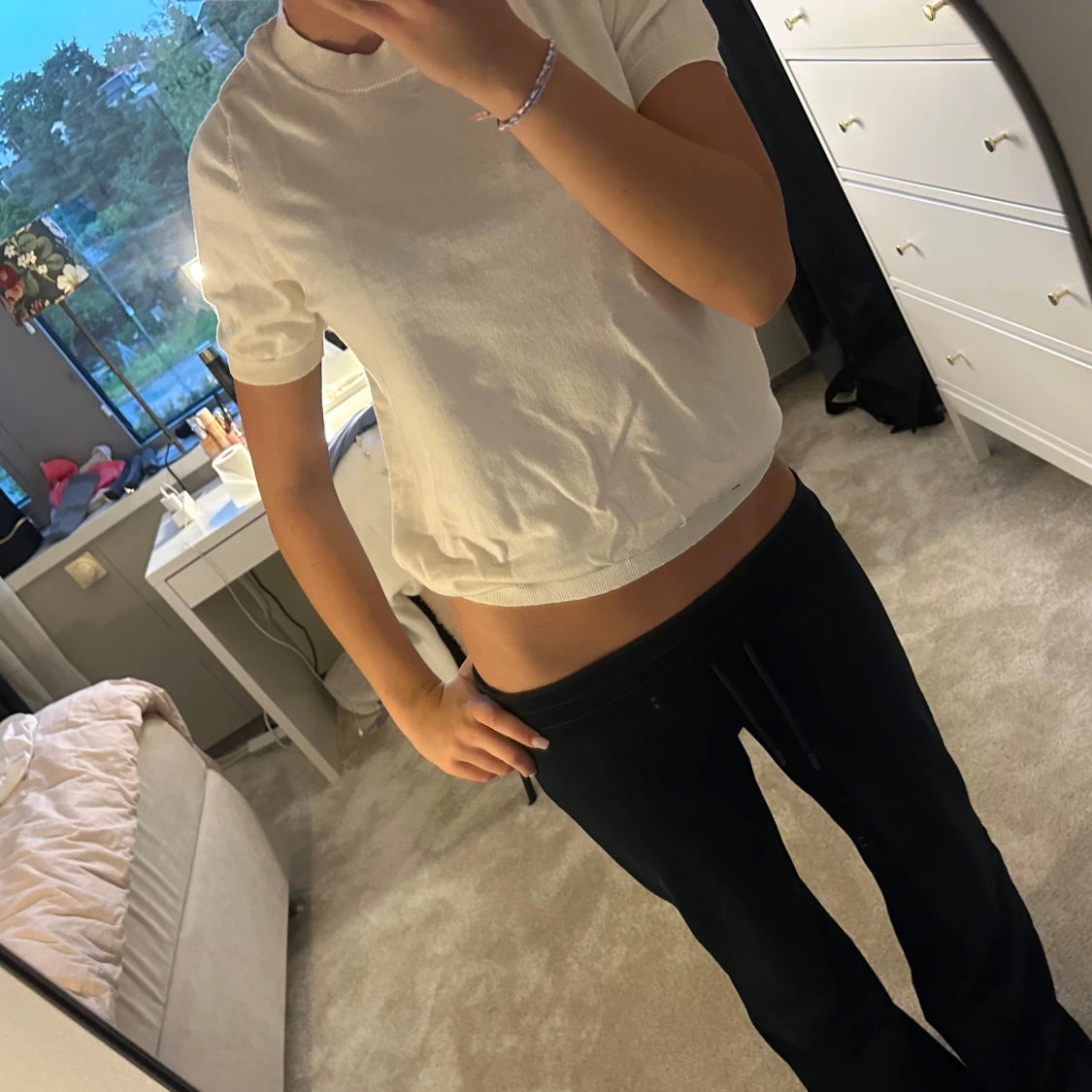 Enkel och fräsch vit t-shirt med croppad passform. T-shirten har korta ärmar och rund halsringning. Jätte skön och lätt.🥰