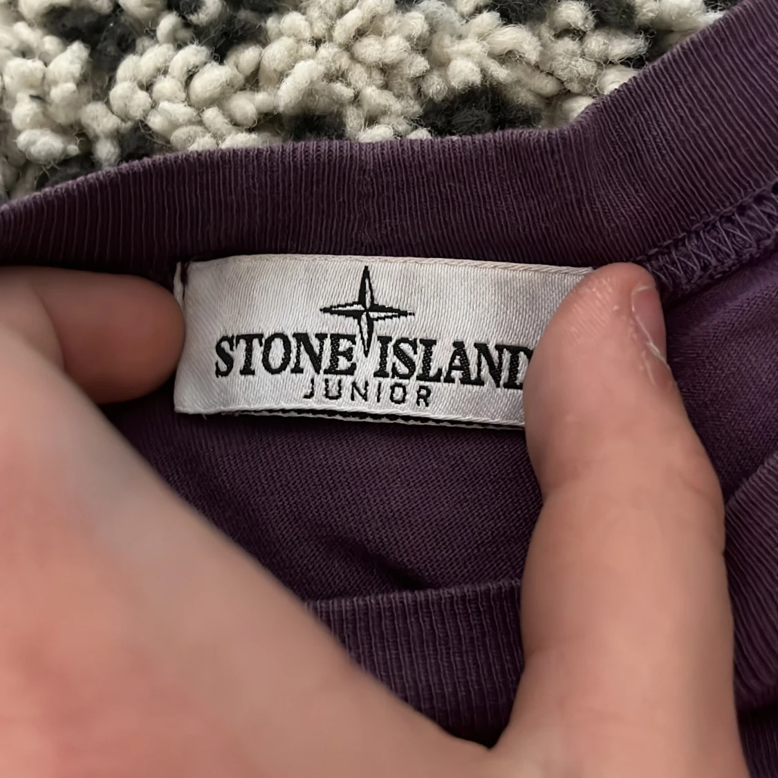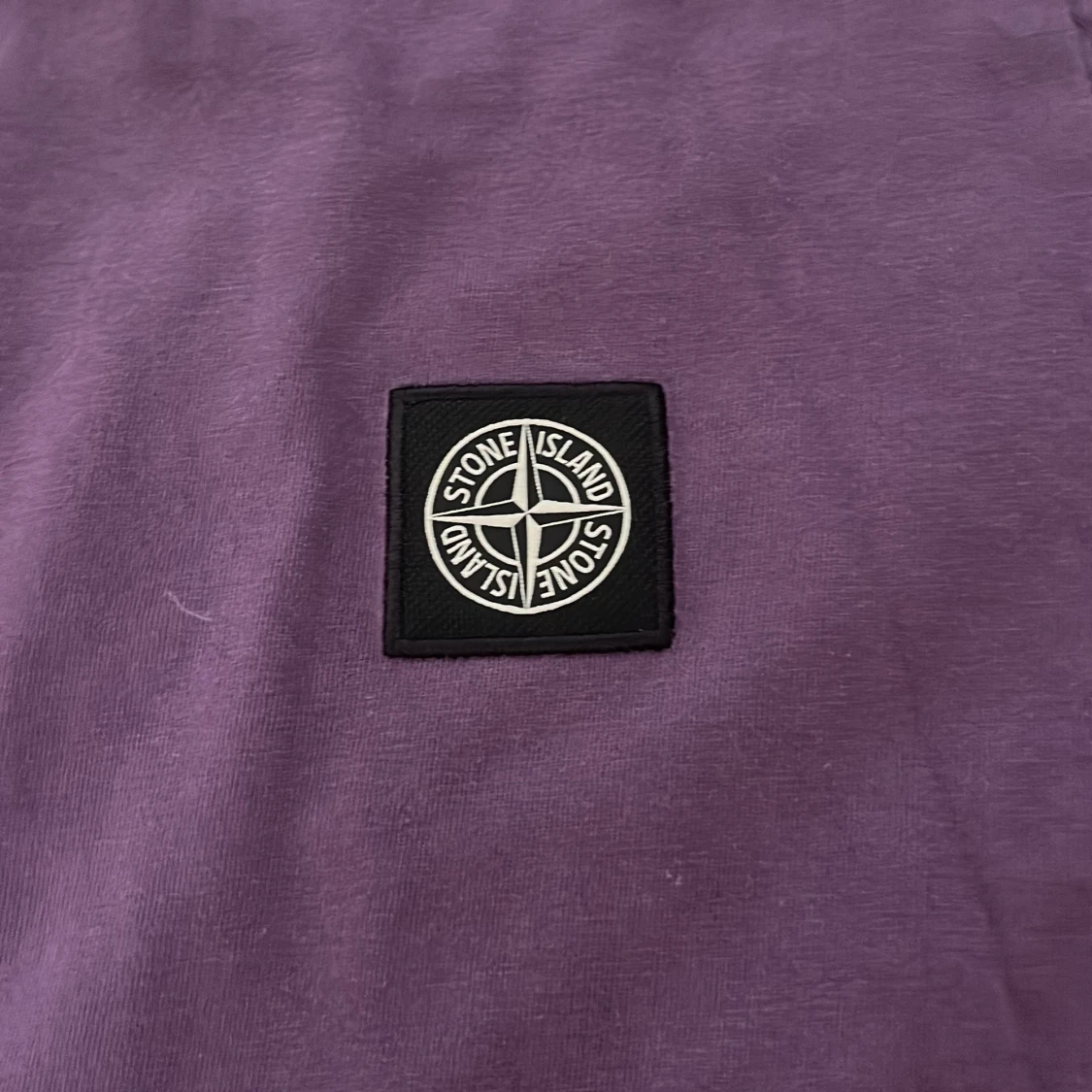 Säljer en lila t-shirt från Stone Island Junior med klassisk logotyp-patch på bröstet. T-shirten har rund hals och är tillverkad i mjuk bomull. Perfekt för dig som gillar streetwear och vill ha något stilrent men ändå unikt.