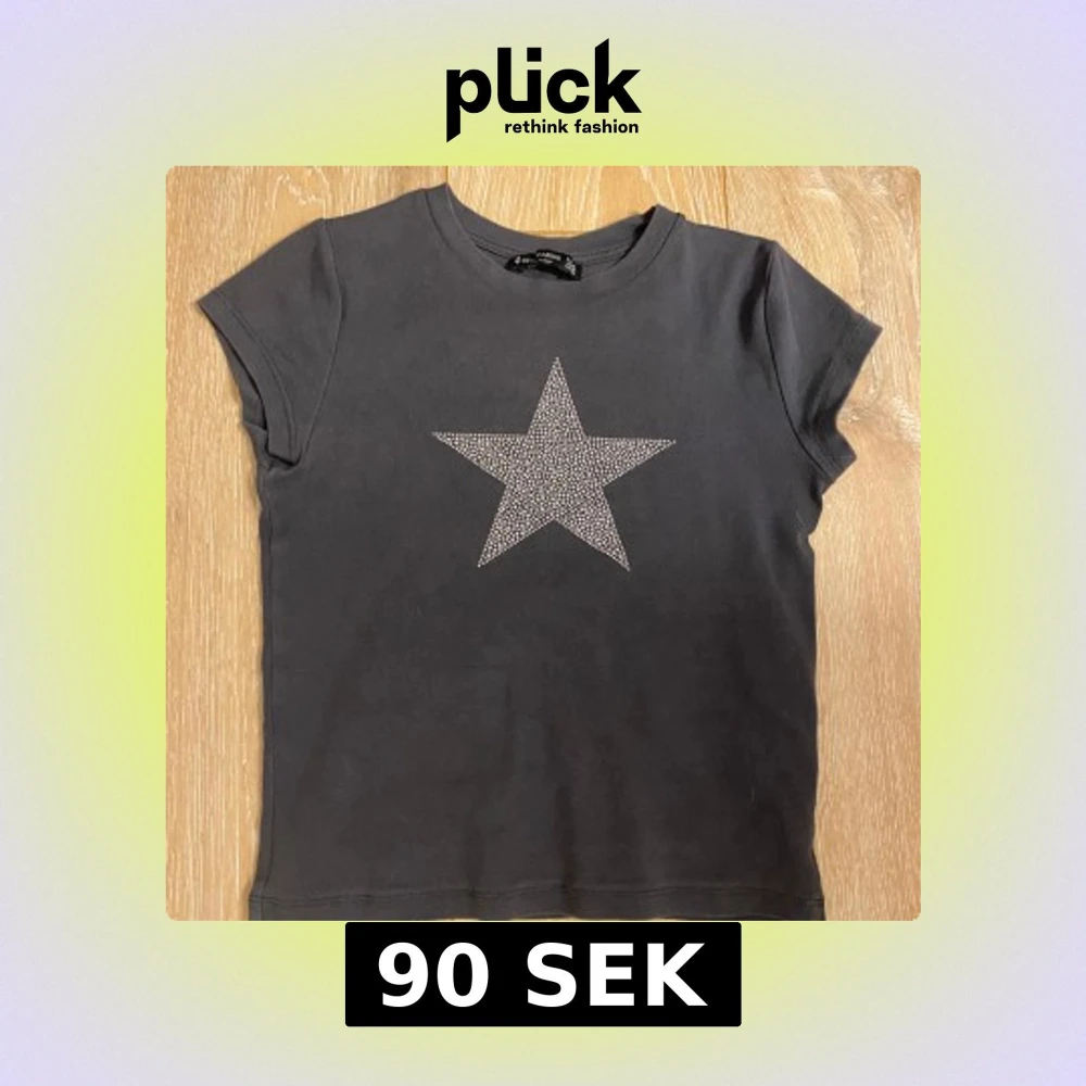 Cool grå t-shirt från stradivarius med korta ärmar och en stor stjärna i silvriga små nitar på bröstet. Mjuk bomullskvalitet och klassisk rund hals. Perfekt för dig som gillar enkla men snygga detaljer.