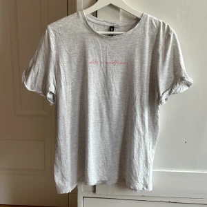 Tunn och somrig med blommor på ryggen. Lite text på framsidan. Armarna är upprullade precis i kanten. Köpt på H&M🐰🦋🩷
