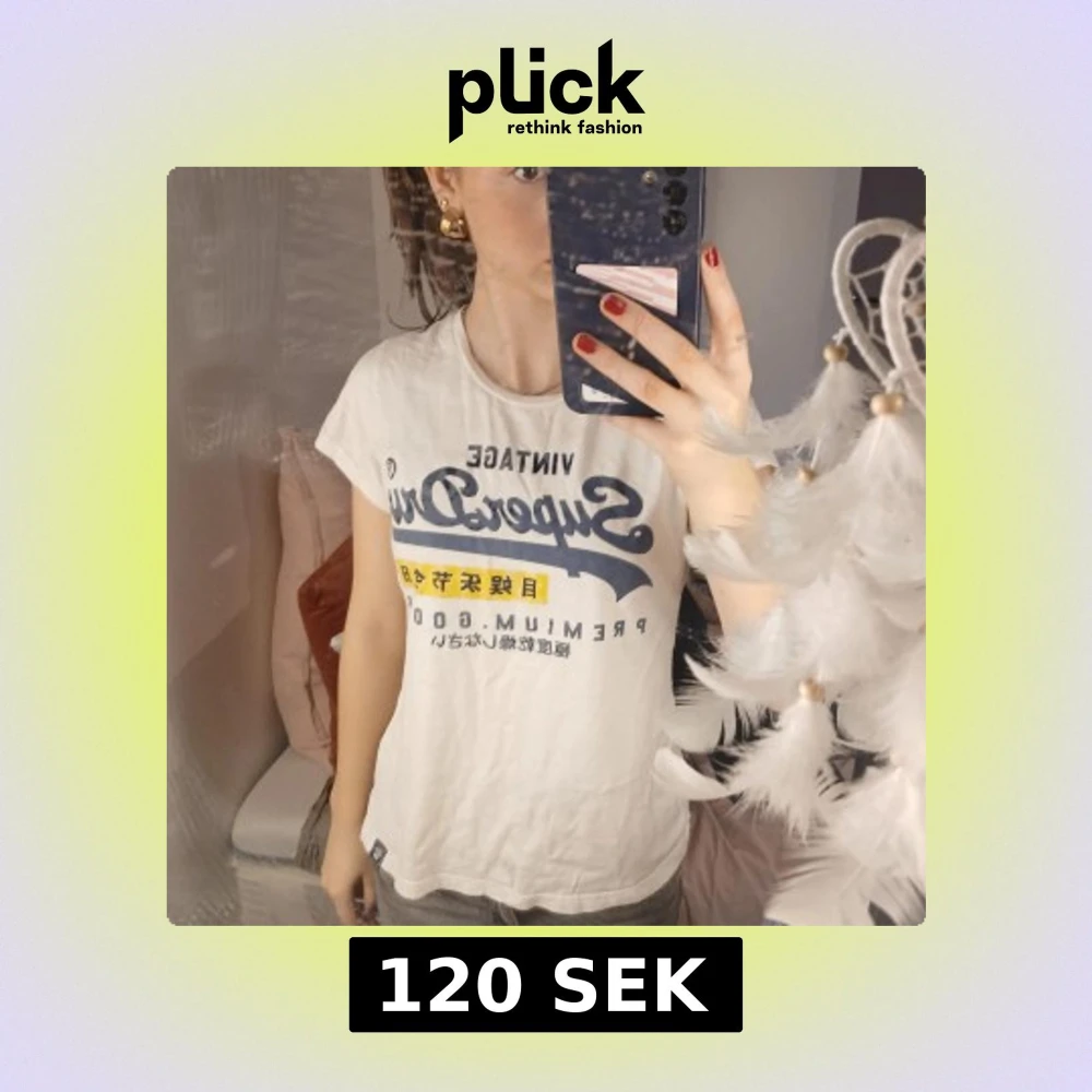 Säljer en vit t-shirt från Superdry med tryck. T-shirten är i storleken EU 40 men passar bra på mig som brukar ha xs/s💕