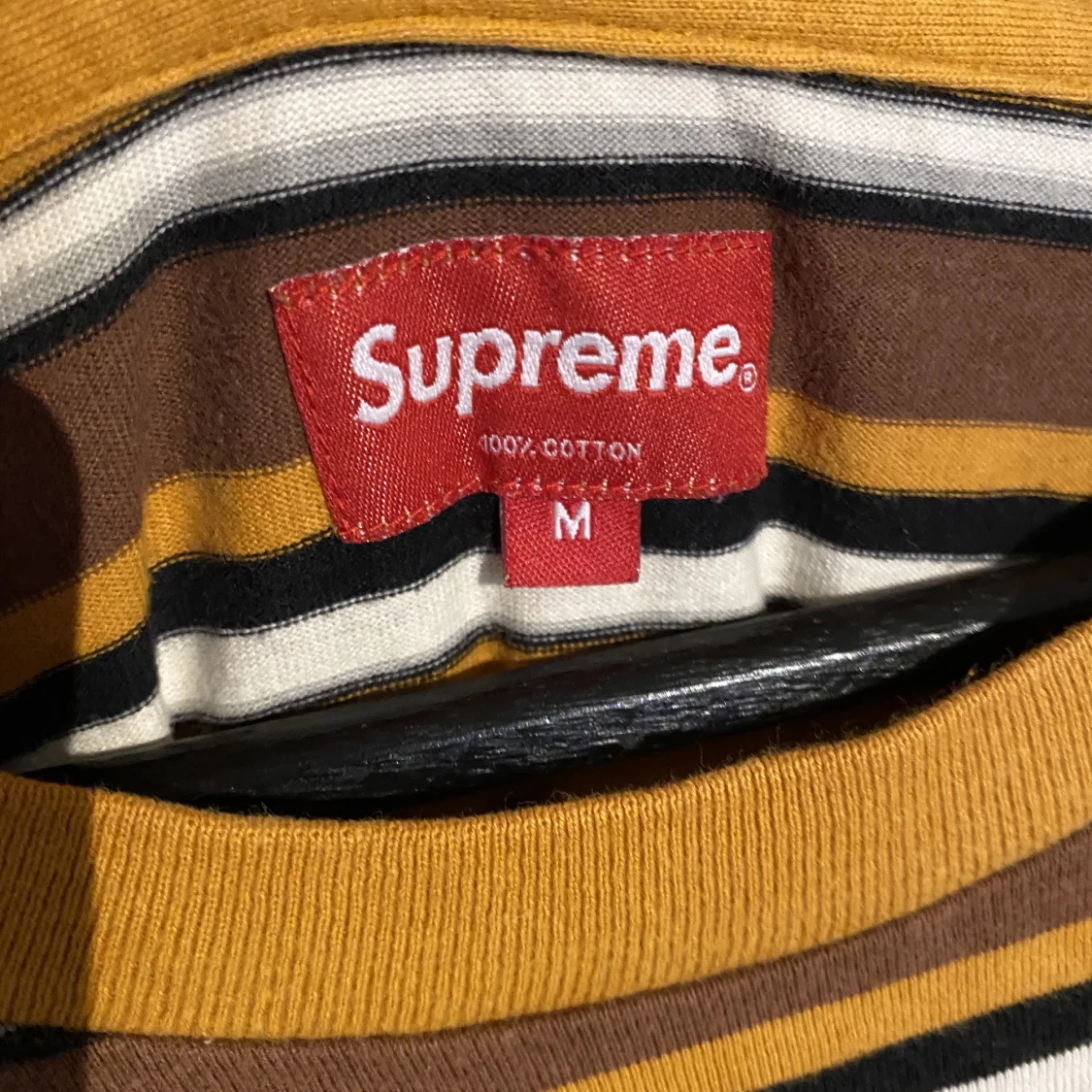 Randig Supreme long sleeve från Fall/Winter 15, size M men sitter mer som en L, knappt använd. Köptes 2018 och har hängt i garderoben sen dess. Myckey bra condition. Swish, köparen står för frakt och no refunds osv osv.. 🫶🏼