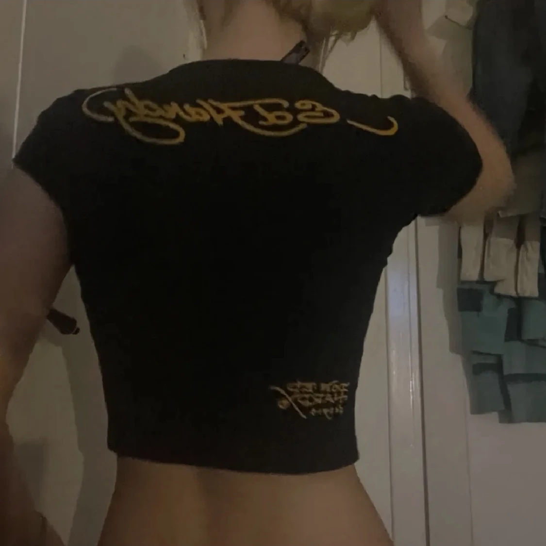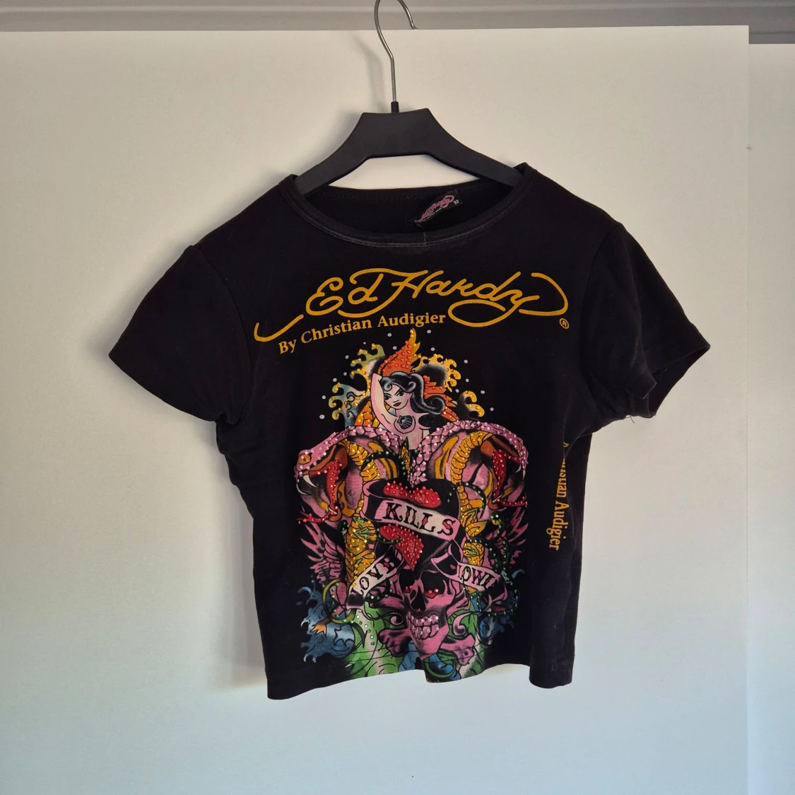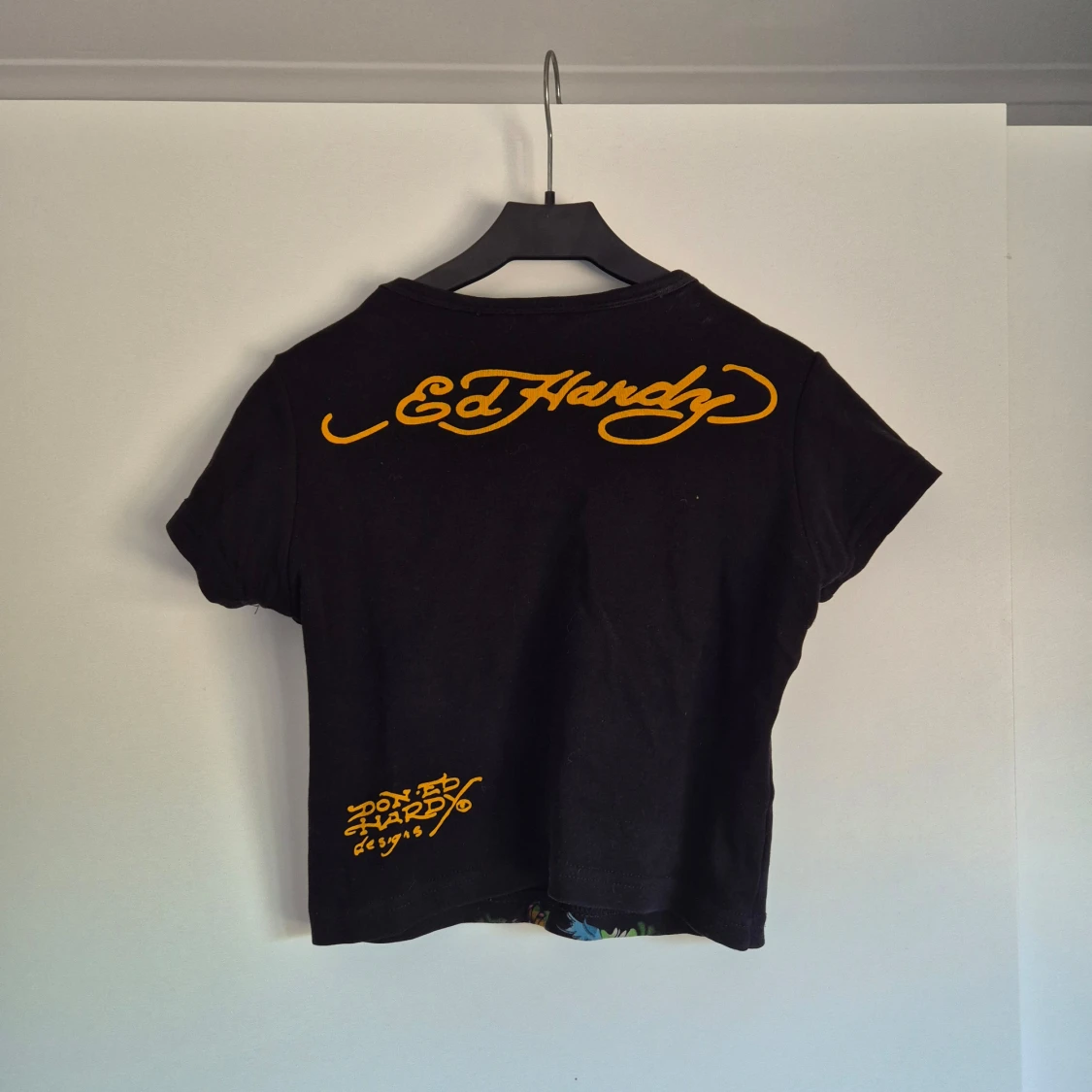 Cool svart crop-top från Ed Hardy med stort färgglatt tattoo-inspirerat tryck framtill och gul logga både fram och bak. Modellen är croppad och har korta ärmar. Perfekt för dig som gillar statement-plagg. (INTE MINA BILDER MED TRÖJAN PÅ)