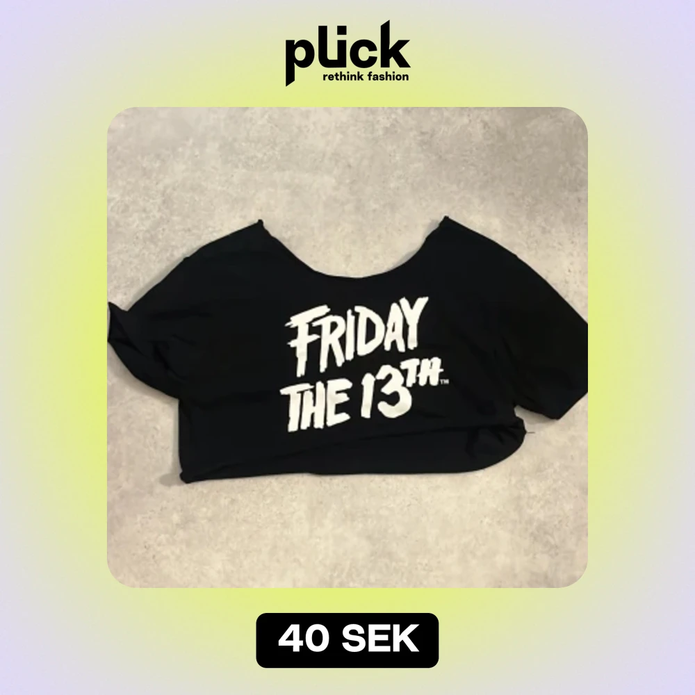 svart cropad off shoulder t-shirt friday 13th tryck. vita tröjan under följer inte med💞