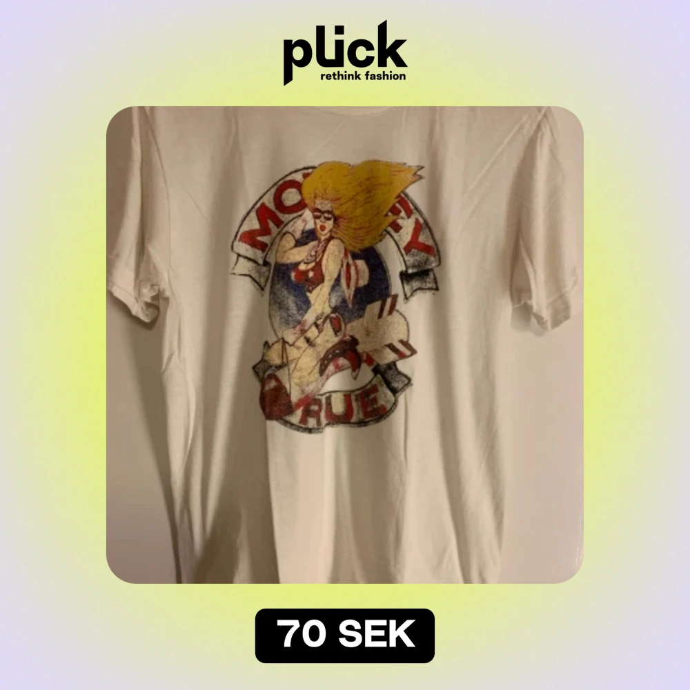 Mötley Crüe Tee i storlek M-L, 63 cm från axeln och ner, 46cm mellan armhålorna. Tryck på baksidan också.