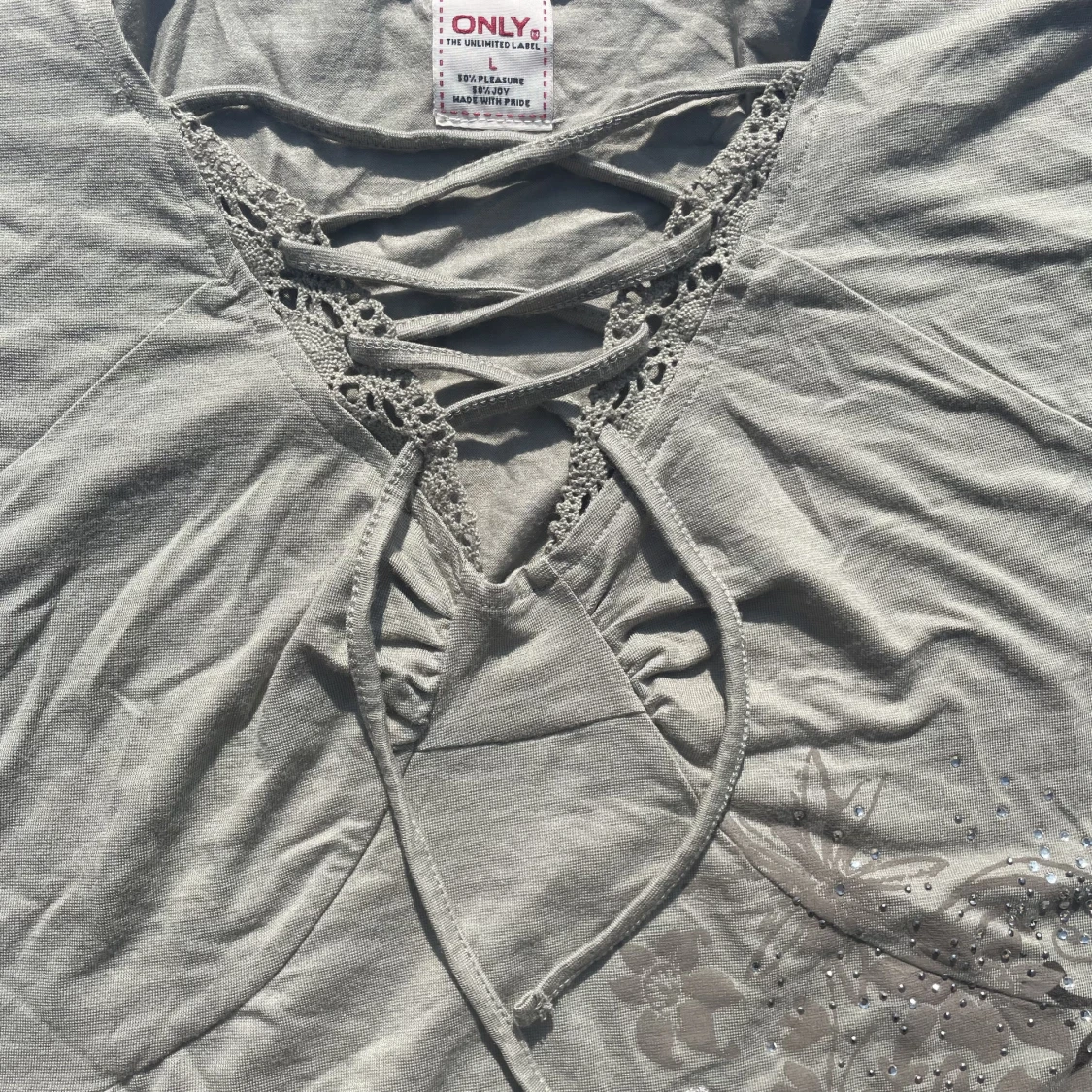 Y2k tshirt från Only i stl L💗stretchigt typ med knytning vid necklinen🫶 I fint skick Kolla gärna in mina andra annonser