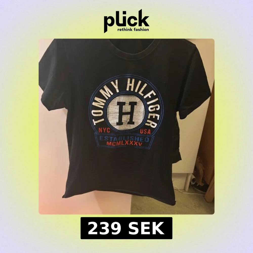 Snygg svart t-shirt från Tommy Hilfiger med stort tryck på framsidan. Den är i storlek L men sitter även jätte bra på M, pris kan diskuteras!! Tveka inte att skriva!!