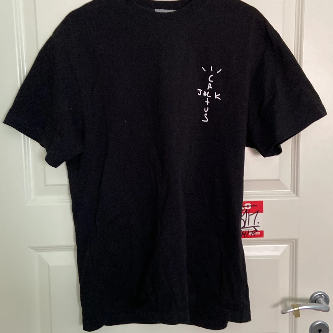 Säljer denna sjukt feta Travis scott t-shirten. Har inga skador helt oanvänd säljer för att den inte passa mig. M men stor i storleken