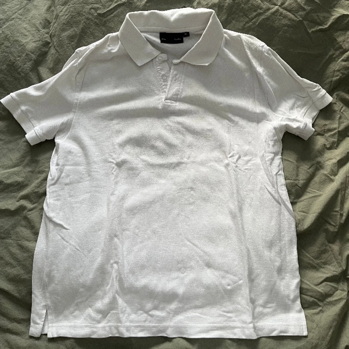 Vit polo tröja med tryck på ryggen Köpt second hand från stadsmissionen