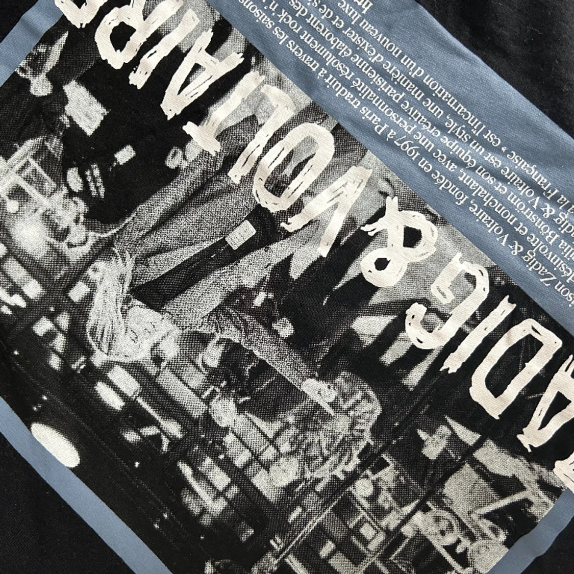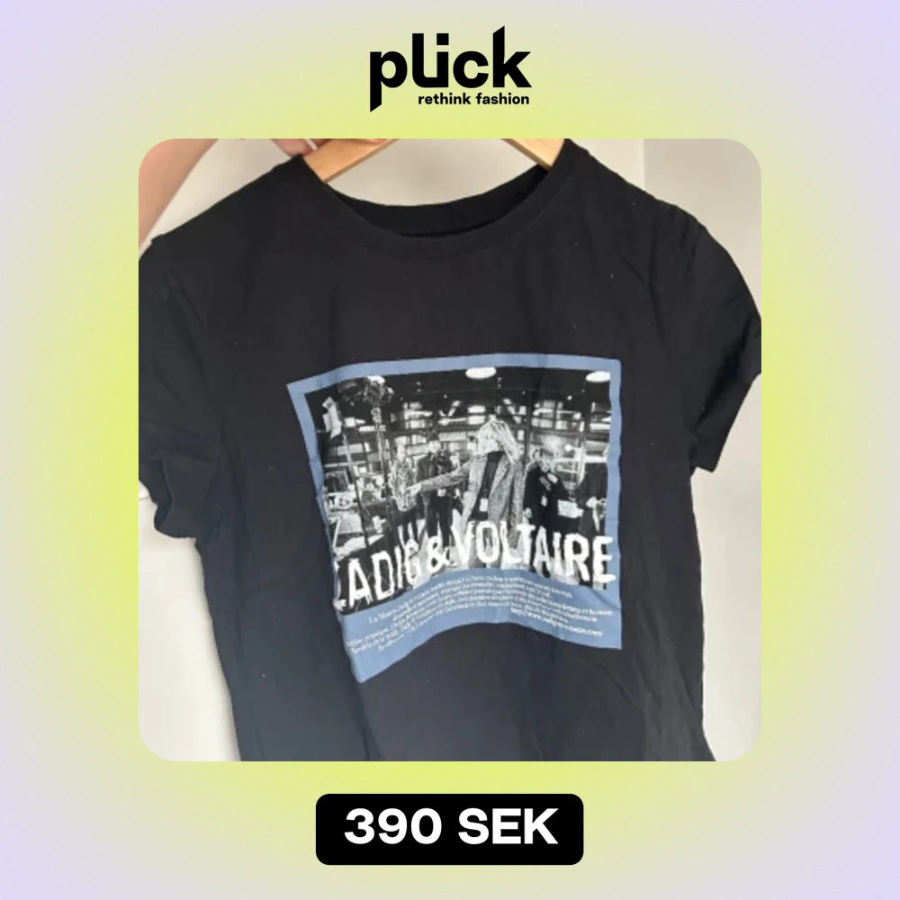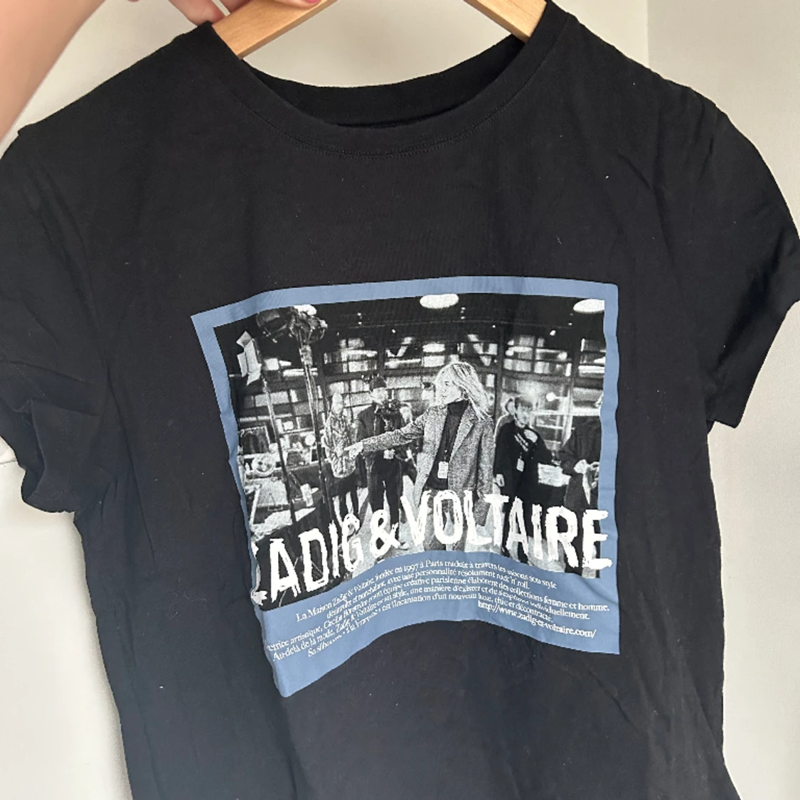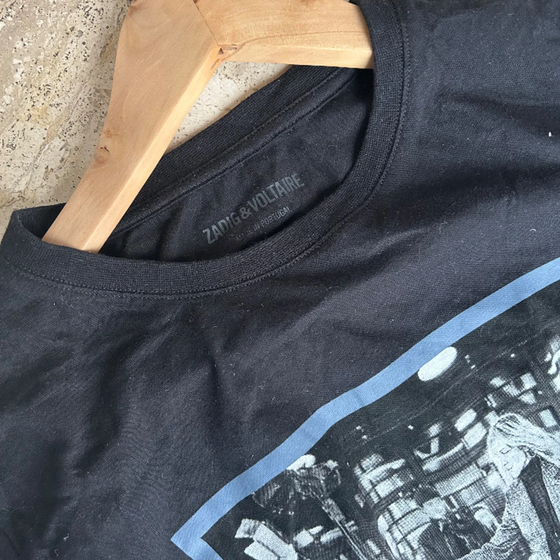 Svart Zadig Voltaire T-shirt med blått tryck på framsidan. Storlek XS. Bra skick eftersom jag inte använt tröjan så många gånger.