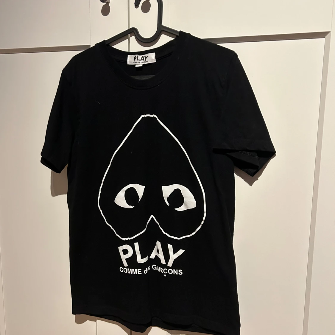 Snygg svart t-shirt från Comme des Garçons med det ikoniska PLAY-trycket i vitt framtill. Perfekt för en stilren och modern look.