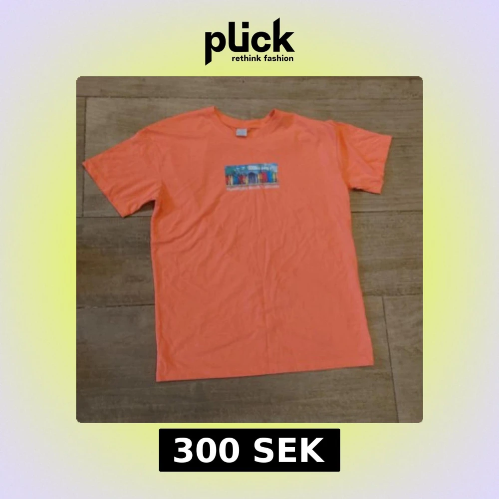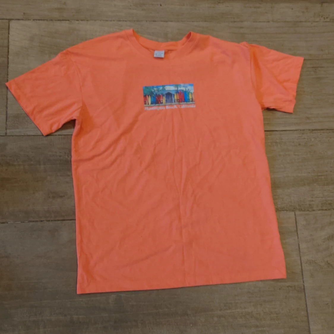 Snygg orange t-shirt från Lindex med färgglatt tryck på bröstet där det står 'Huntington Beach, California'. Klassisk passform och rund halsringning, perfekt för dig som gillar färg och vill sticka ut lite extra.