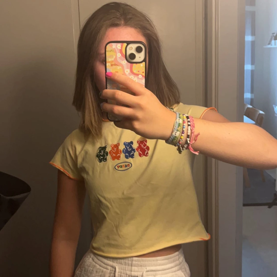Söt tshirt som man ser fett brun ut i. strl M men passar som S eller XS. Säljer pga kommer inte till användning. Endast använd ett fåtal gånger och i bra skick