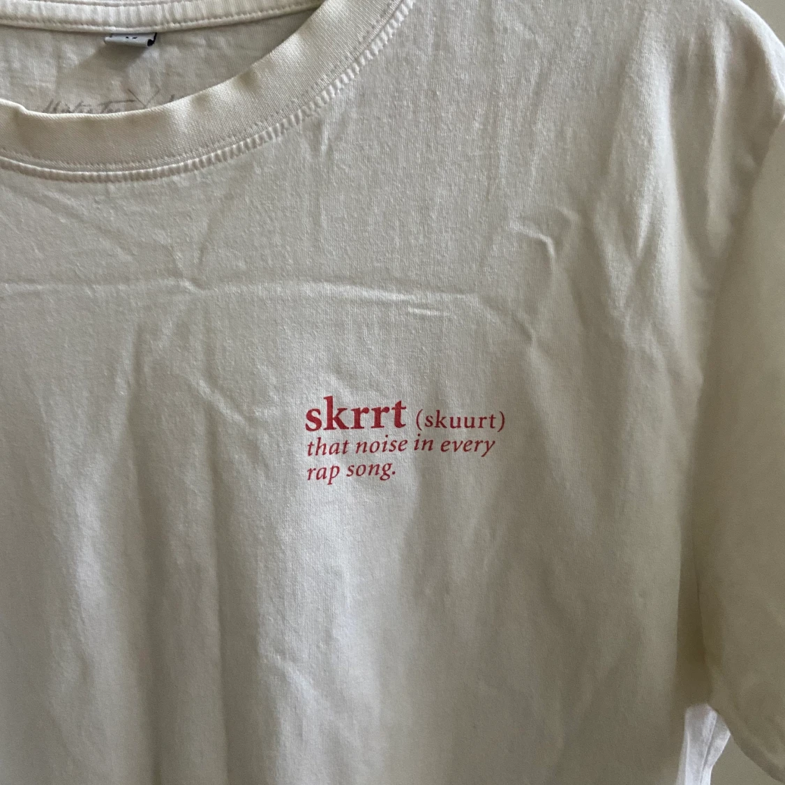 En t-shirt med tryck <3 använd 2-3 gånger. Köpt i barcelona och är från mistee tee X kreemo.