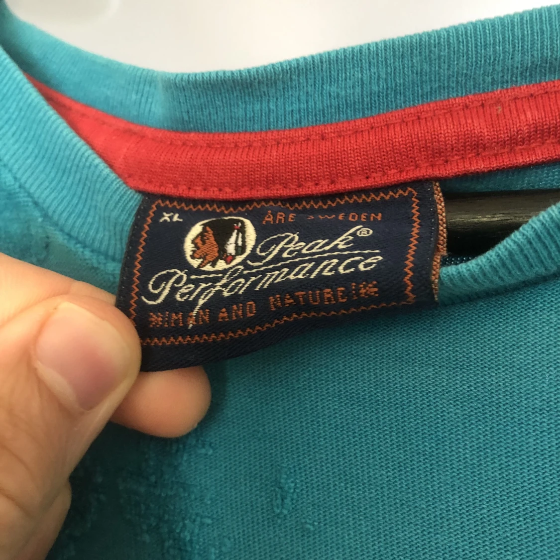 T-shirt Peak Performance står att den är i XL men är egentligen i S, sitter väldigt bekvämt och har upppigande färg, skriv om ni vill veta mer