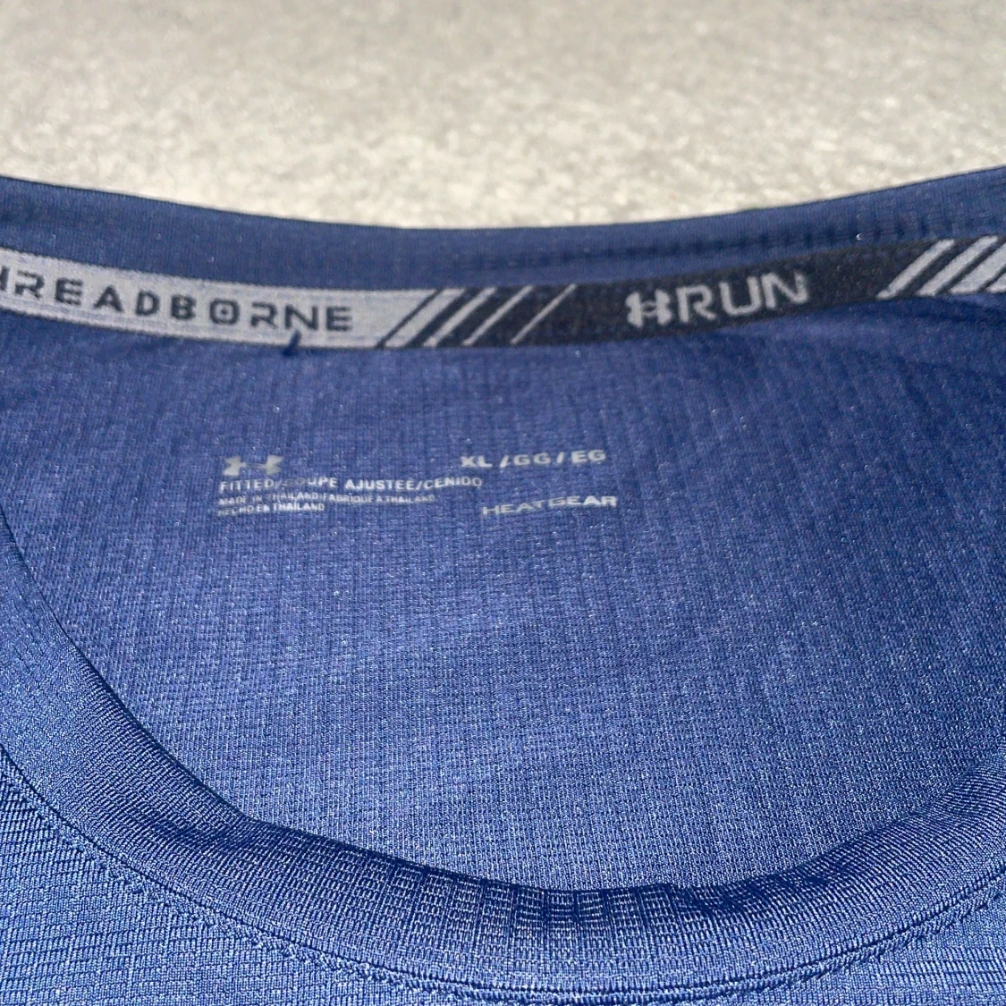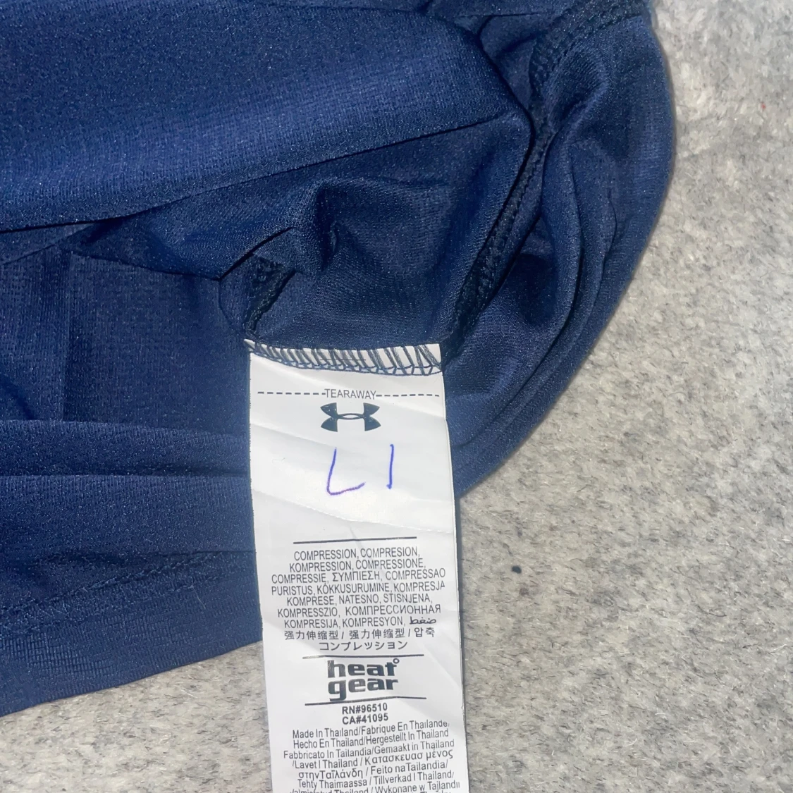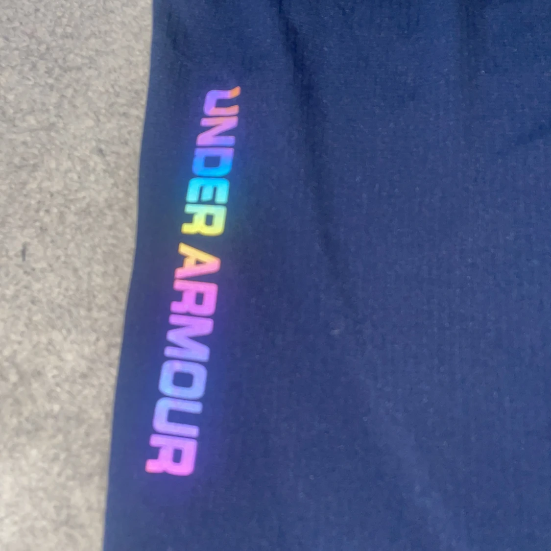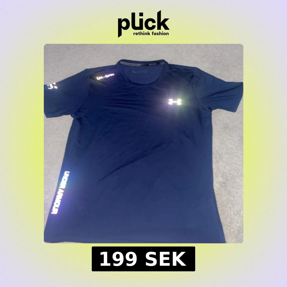 Snygg marinblå t-shirt från Under Armour med reflekterande logga storlek xl men passar mer som L använd endast en gång därav priset