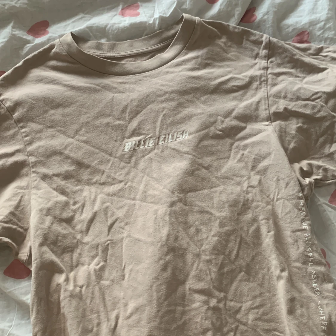 Bra skick, inga hål eller lösa trådar men lite sliten fats inget märkvärdigt, strl xs. Billie Eilish t-shirt. 100 inklusive frakt 🚚