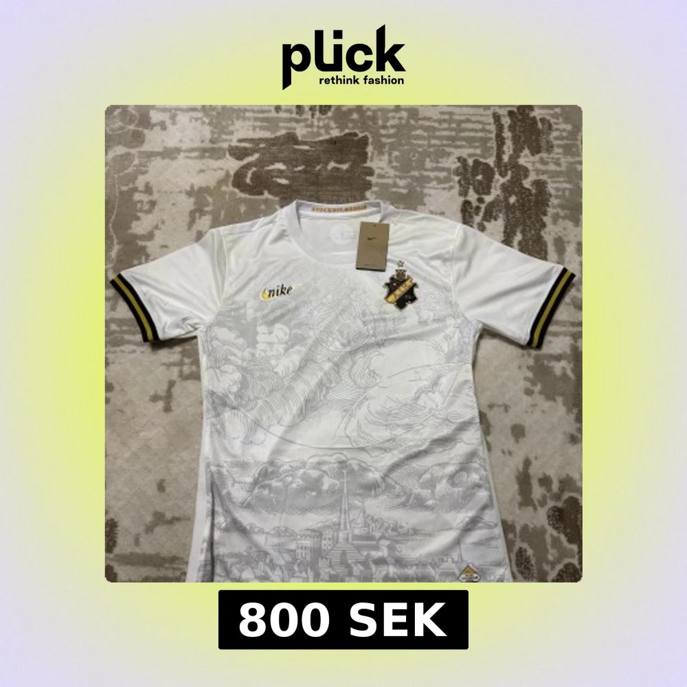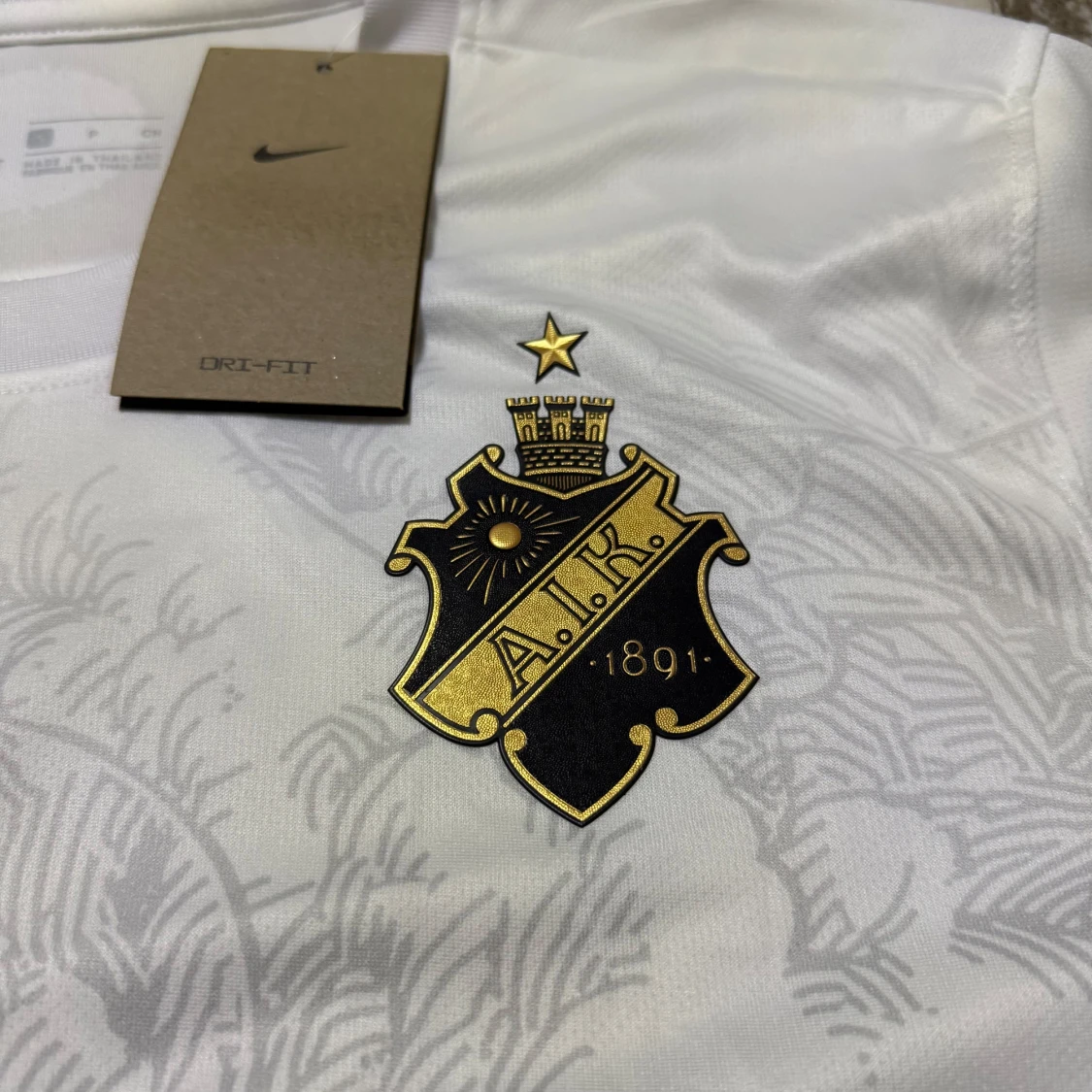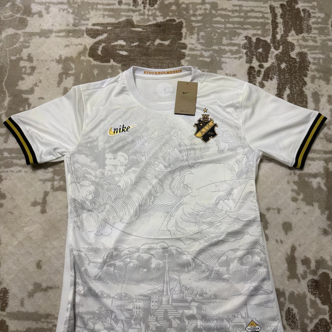 Snygg vit AIK fotbollströja från Nike med korta ärmar och stilrena detaljer. Helt ny aldrig använt. Köparen står för Frakt.