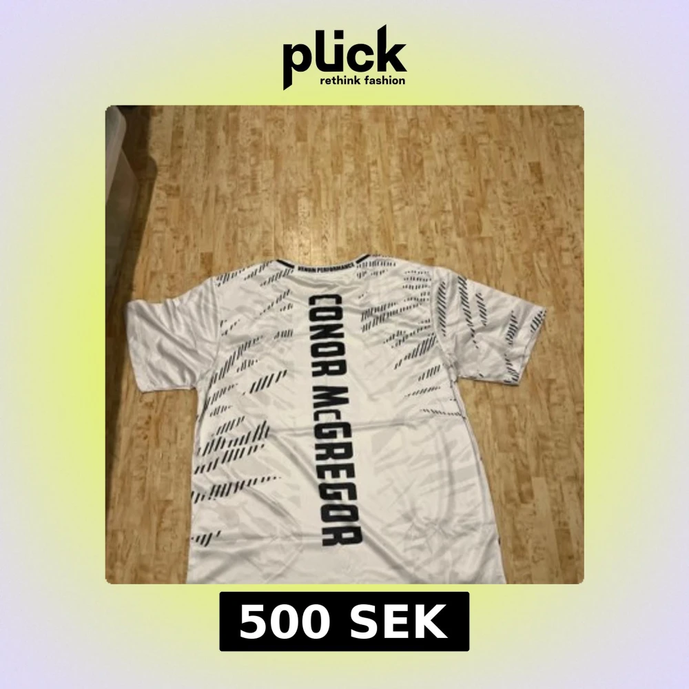 Säljer en vit UFC t-shirt från Venum med Conor McGregor-tryck på ryggen och coola svarta grafiska detaljer. Framsidan har UFC-logga, Venum-logga och crypto.com-tryck. T-shirten är kortärmad och har sportig vibe, perfekt för dig som gillar fighting och streetstyle.