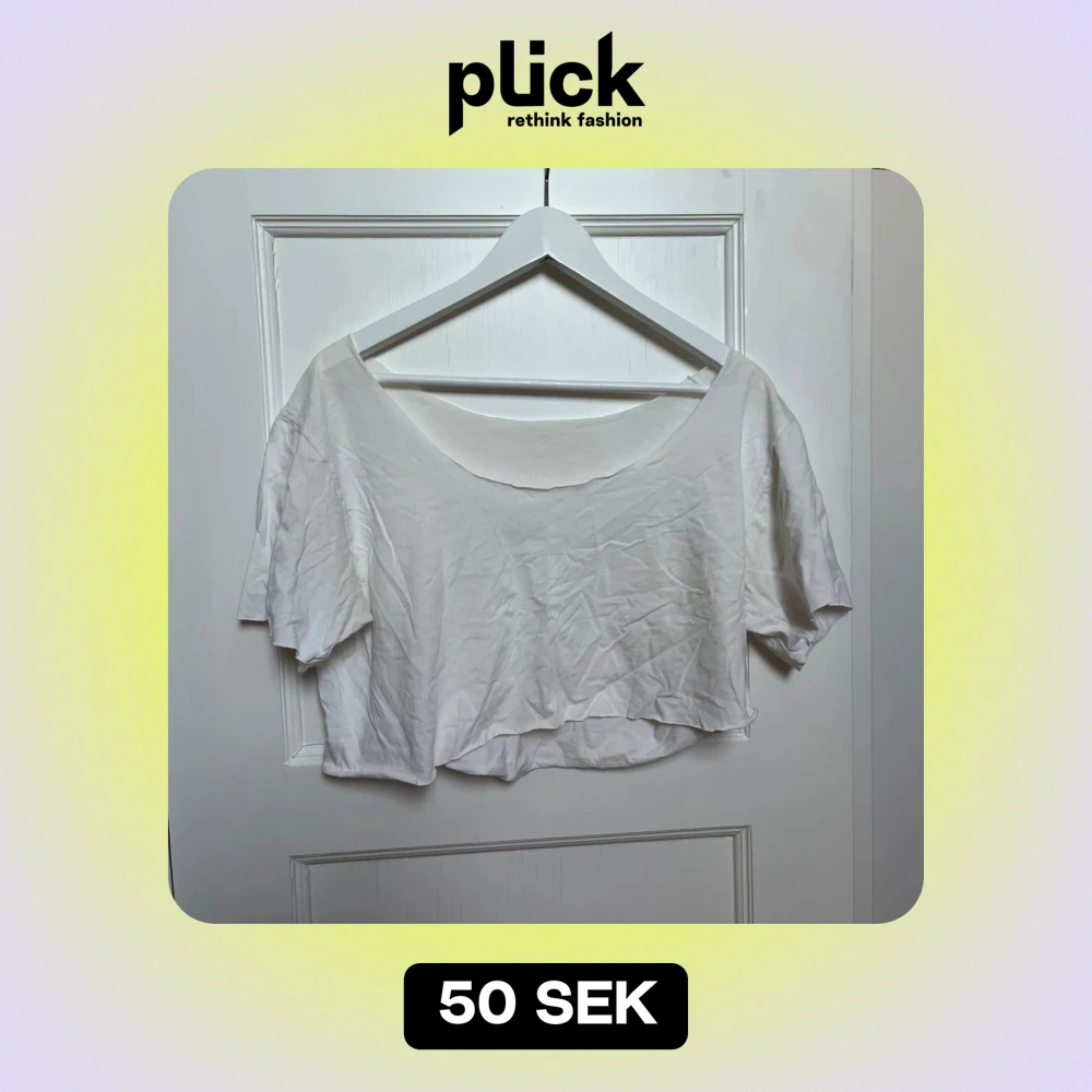 Säljer en enkel och stilren vit croppad topp. Den är kortärmad och har en lös passform, perfekt för sommardagar. Toppen är i bomull och känns skön mot huden. Passar bra till både jeans och kjol för en avslappnad look.